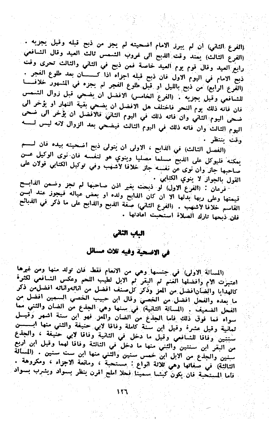 الْبَاب الثَّانِي فِي الْأُضْحِية وَفِيه ثَلَاث مسَائِل