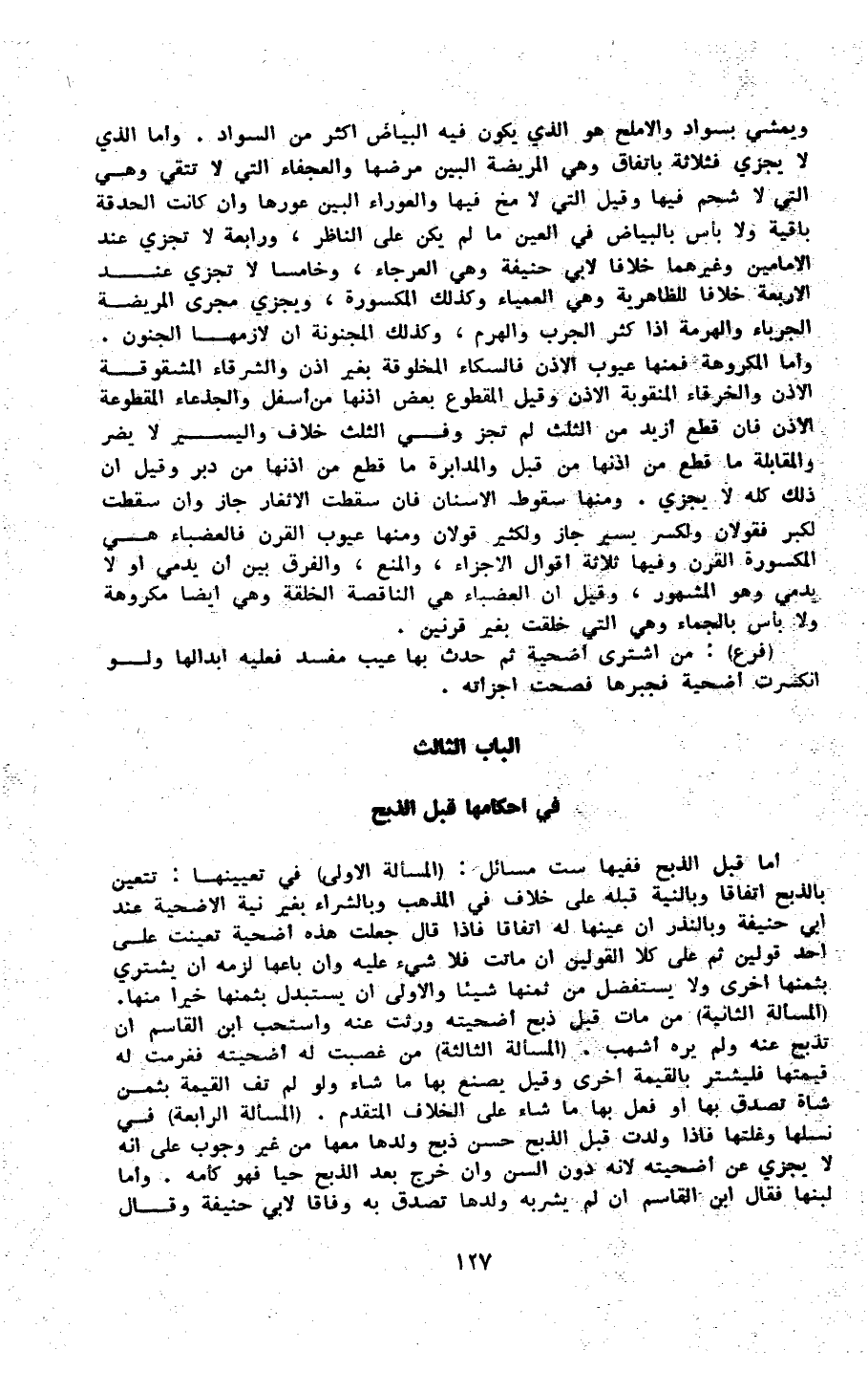 الْبَاب الثَّالِث فِي أَحْكَامهَا قبل الذّبْح
