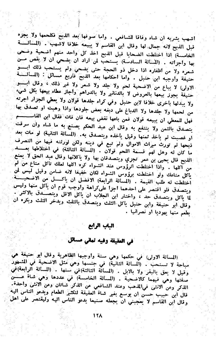 الْبَاب الرَّابِع فِي الْعَقِيقَة وَفِيه ثَمَانِي مسَائِل