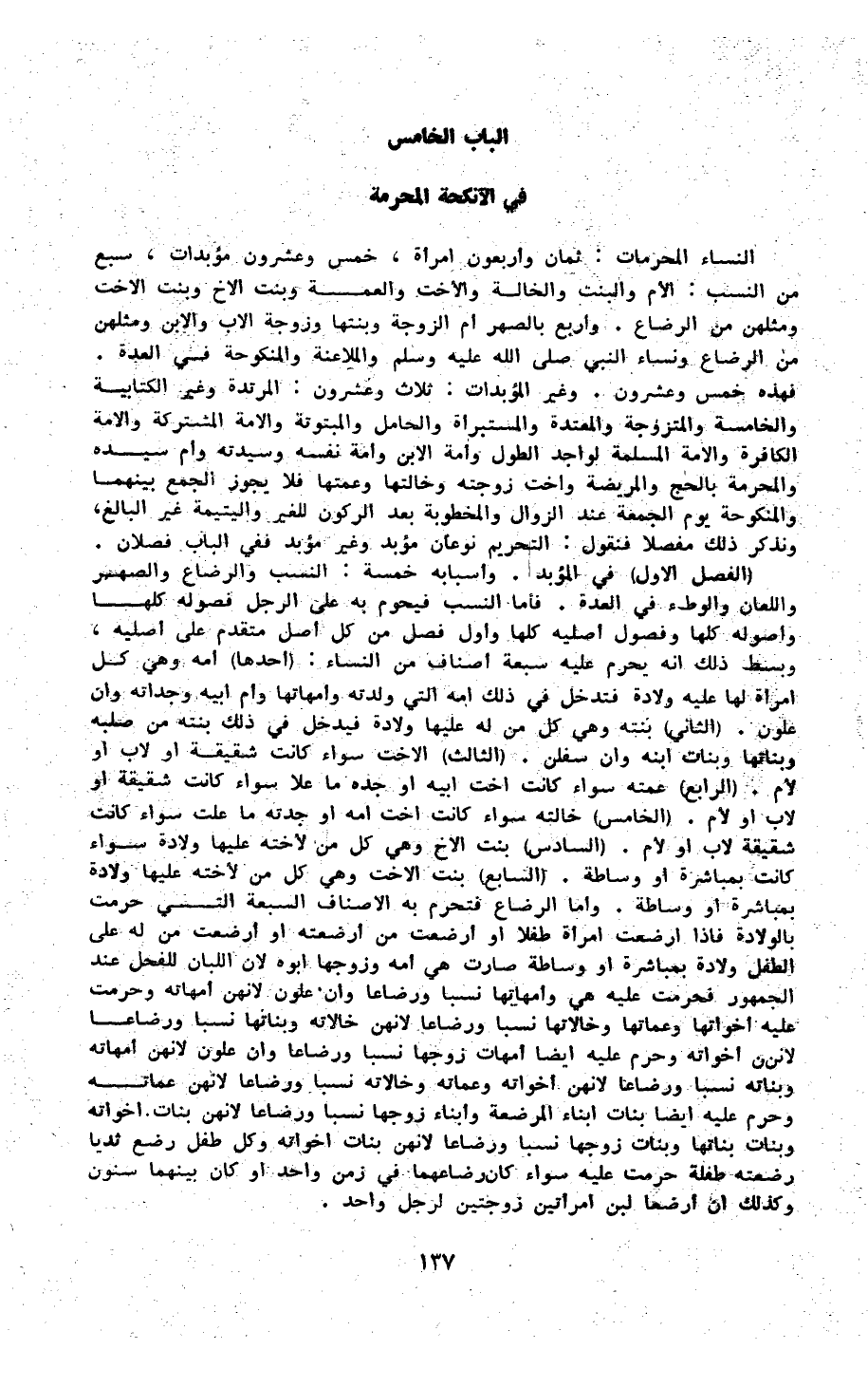 الْبَاب الْخَامِس فِي الْأَنْكِحَة الْمُحرمَة