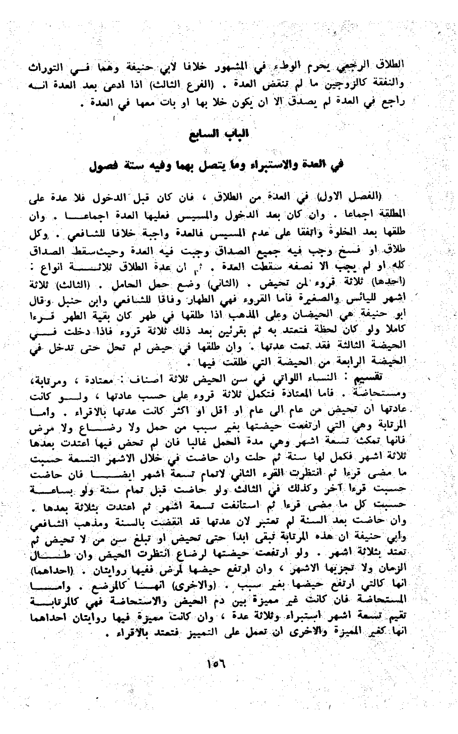 الْبَاب السَّابِع فِي الْعدة والاستبراء وَمَا يتَّصل بهما وَفِيه سِتَّة فُصُول