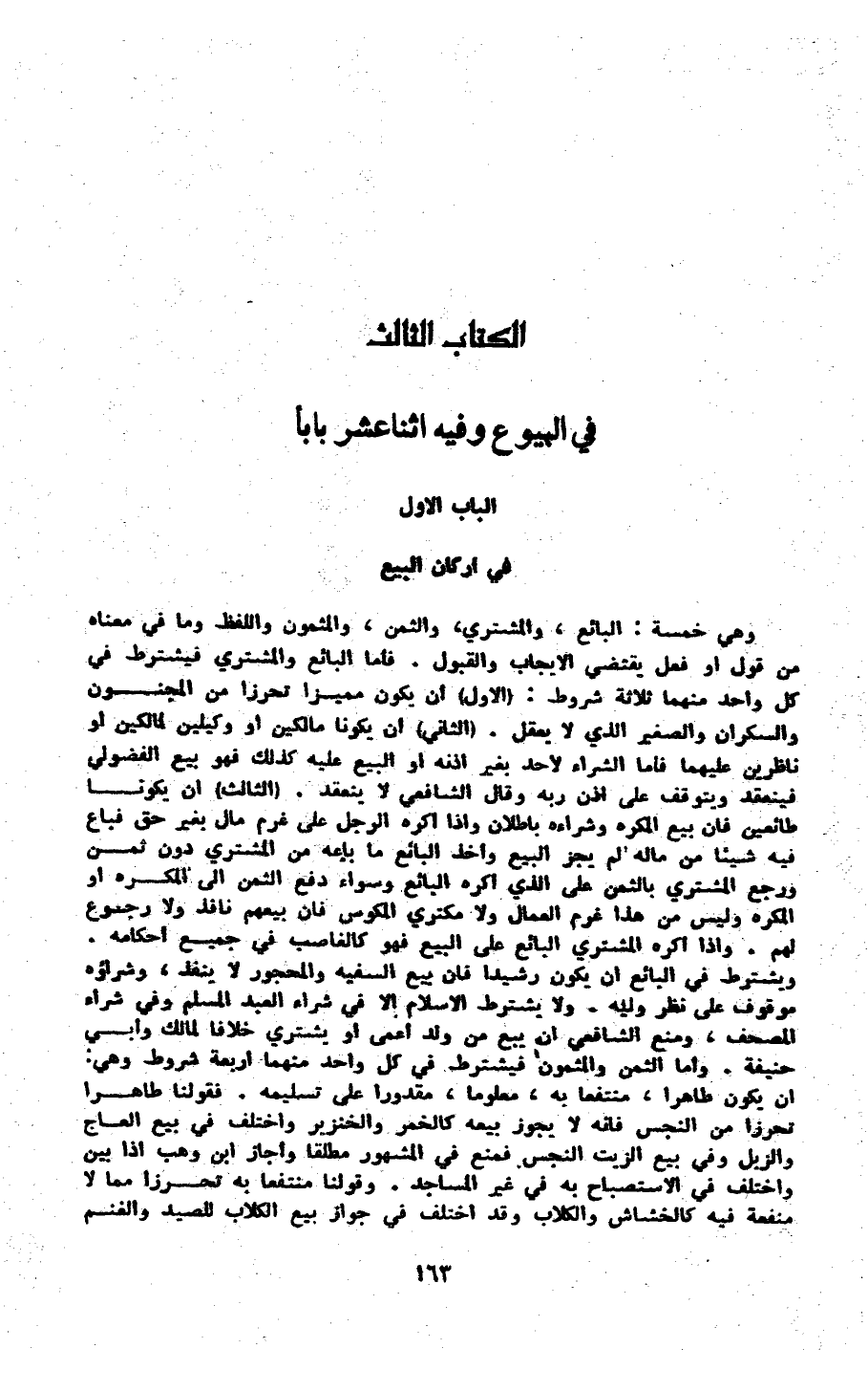 = الْكتاب الثَّالِث فِي الْبيُوع وَفِيه اثْنَا عشر بَابا =