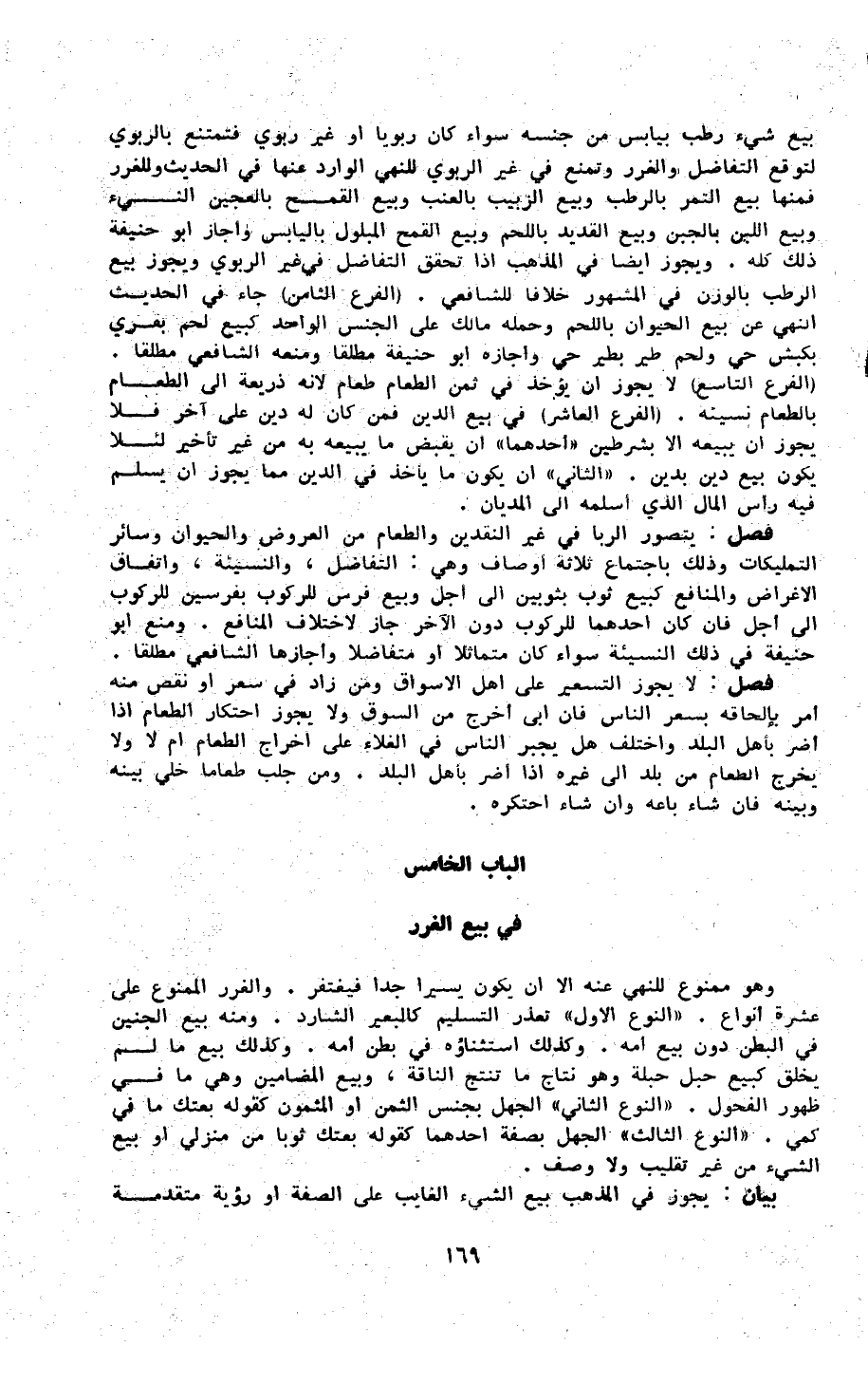 الْبَاب الْخَامِس فِي بيع الْغرَر