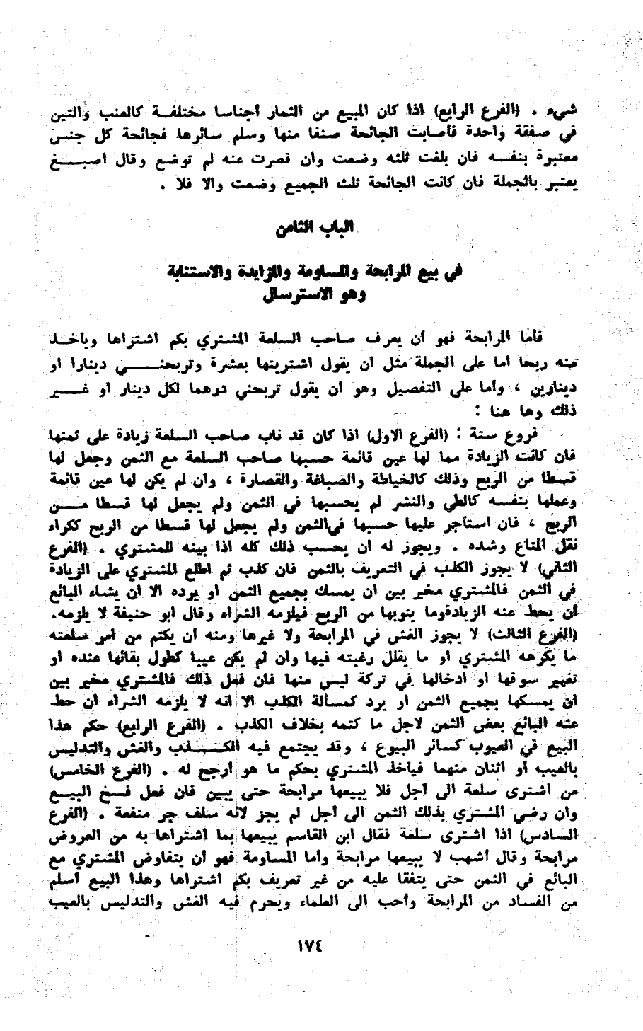الْبَاب الثَّامِن فِي بيع الْمُرَابَحَة والمساومة والمزايدة والاستنابة وَهُوَ الاسترسال
