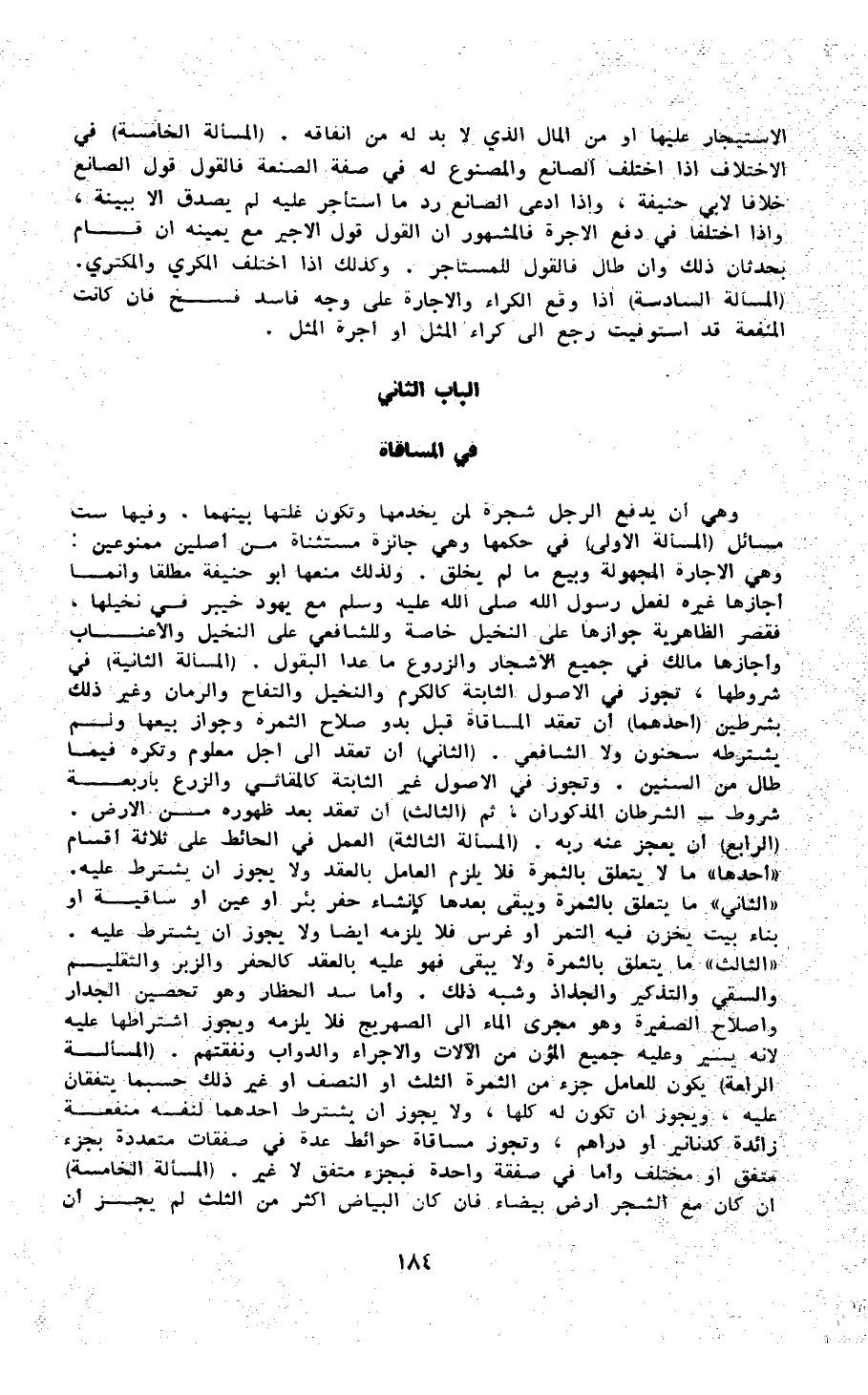 الْبَاب الثَّانِي فِي الْمُسَاقَاة