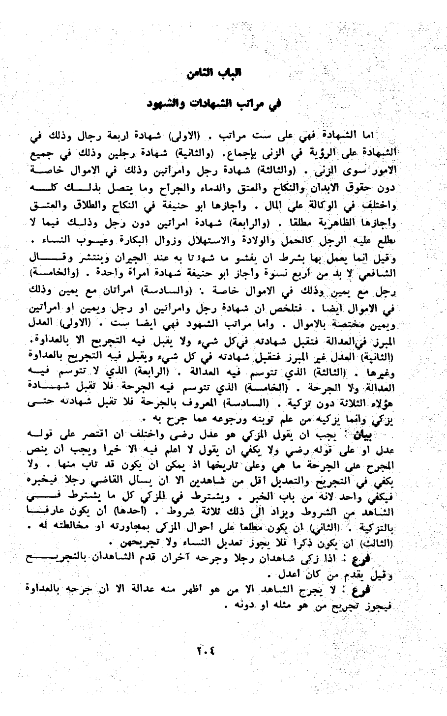 الْبَاب الثَّامِن فِي مَرَاتِب الشَّهَادَات وَالشُّهُود