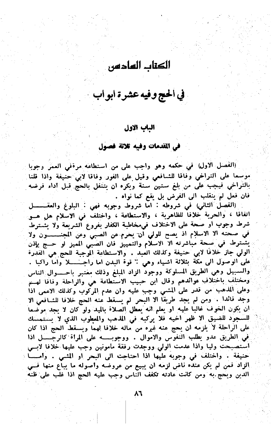 = الْكتاب السَّادِس فِي الْحَج وَفِيه عشرَة أَبْوَاب =