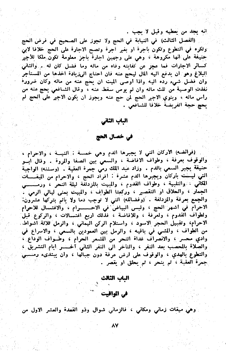 الْبَاب الثَّانِي فِي خِصَال الْحَج