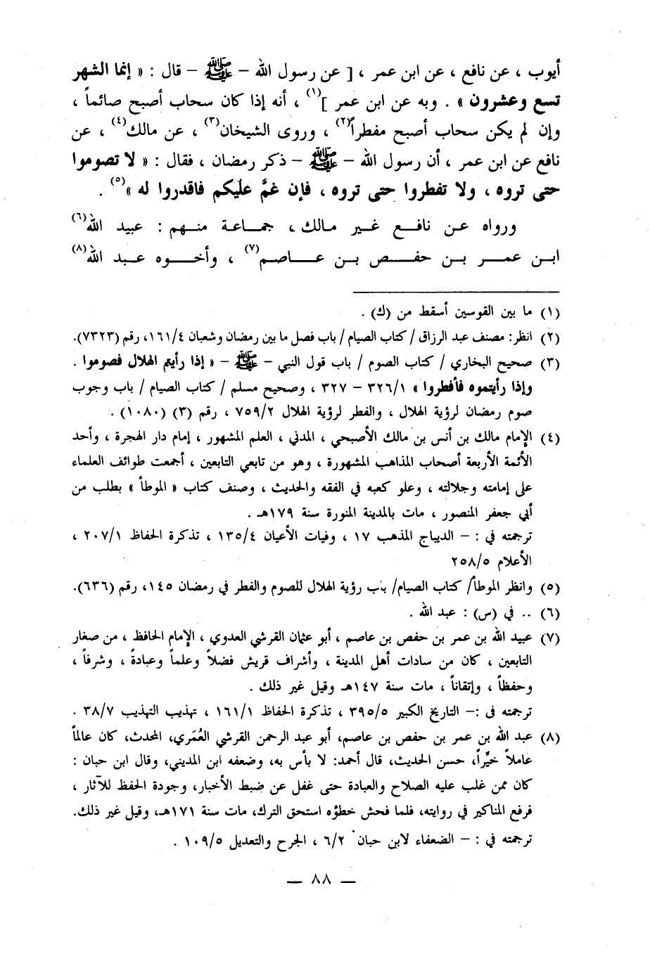 ورواه عن نافع غير مالك، جماعة منهم: عبيد الله6 ابن عمر بن حفص بن عاصم7، وأخوه عبد الله 8ض