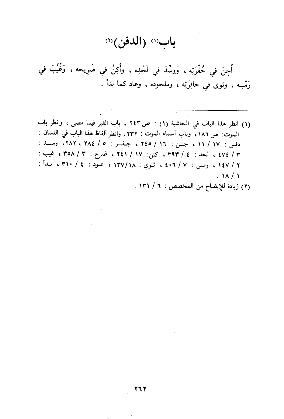 أجن فِي حفرته ووسد فِي لحده واكن فِي ضريحه وغيب فِي رمسه وثوى فِي حافرته وملحوده وَعَاد كَمَا بَدَأَ