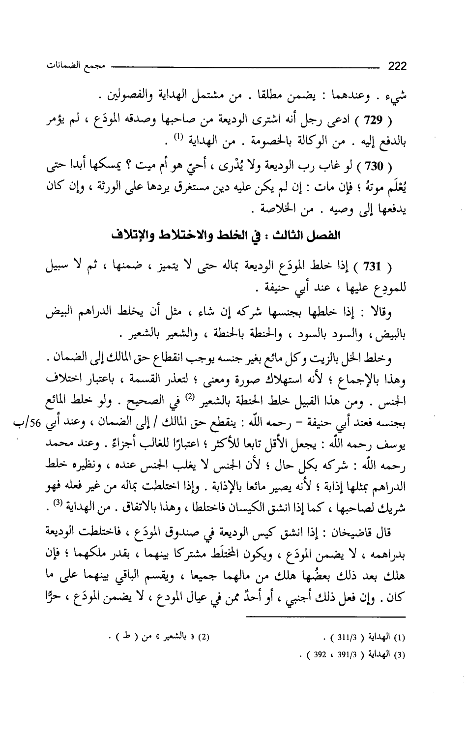 الفصل الثالث في الخلط والاختلاط والإتلاف