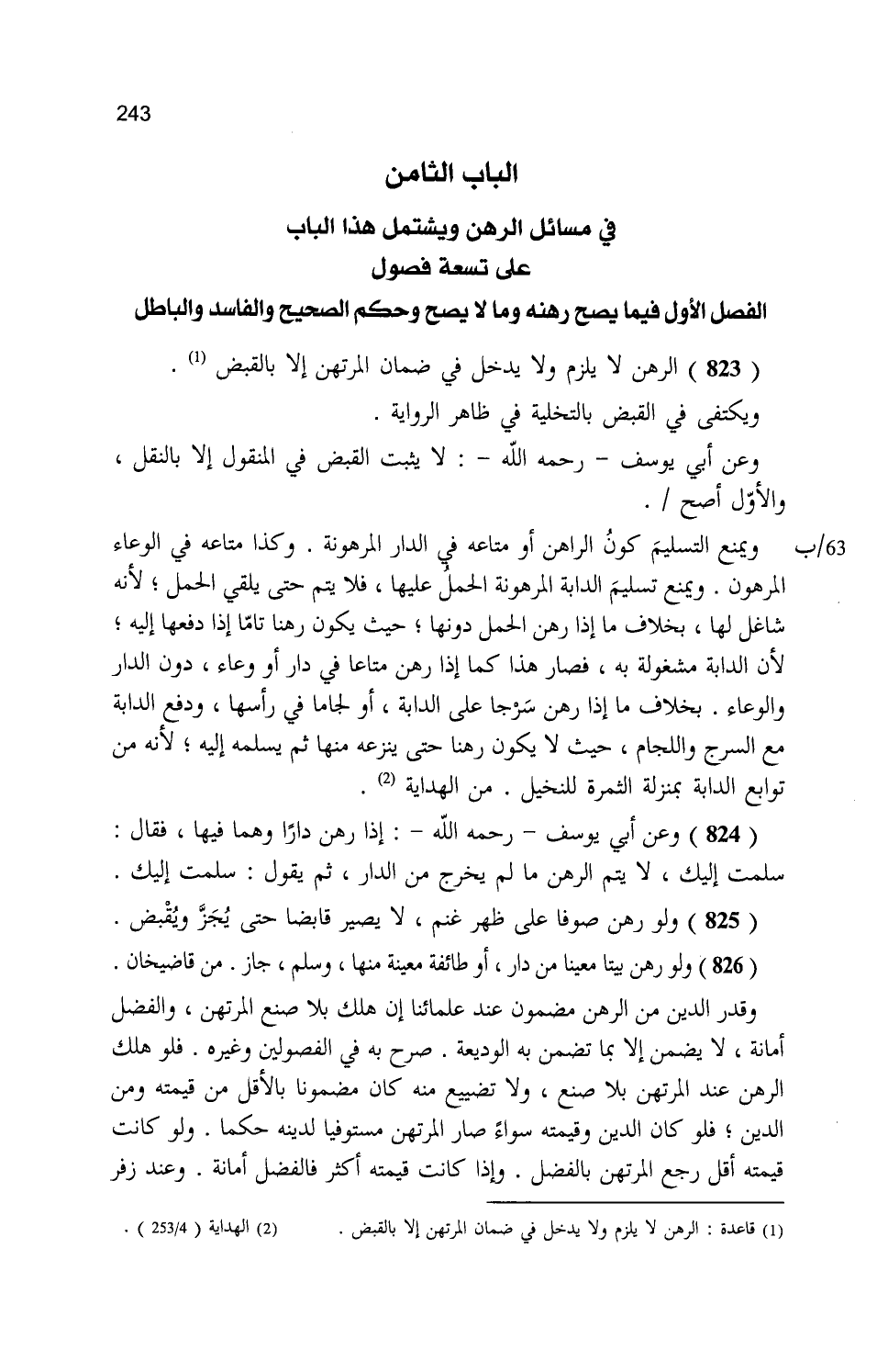 الفصل الأول فيما يصح رهنه وما لا يصح وحكم الصحيح والفاسد والباطل