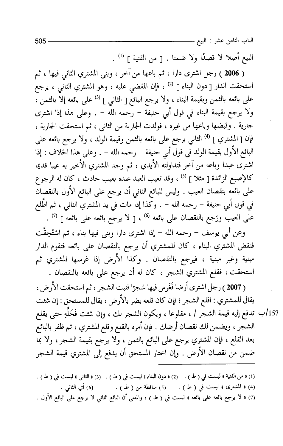 البيع أصلا لا قصدا ولا ضمنا رجل اشترى دارا ثم باعها من آخر وبنى المشتري الثاني فيها ثم استحقت الدار فإن المقضي عليه وهو المشتري الثاني يرجع على بائعه بالثمن وبقيمة البناء ولا يرجع البائع على بائعه إلا بالثمن ولا يرجع بقيمة البناء في قول أبي حنيفة وعلى هذا إذا اشترى جارية وقبضها وباعها من غيره فولدت الجارية من الثاني ثم استحقت الجارية فإن الثاني يرجع على بائعه بالثمن وقيمة الولد ولا يرجع بائعه على البائع الأول بقيمة الولد في قول أبي حنيفة وعلى هذا الخلاف إذا اشترى عبدا وباعه من آخر فتداولته الأيدي ثم وجد المشتري الأخير به عيبا قديما كالإصبع الزائدة وقد تعيب العبد عنده بعيب حادث كان له الرجوع على بائعه بنقصان العيب وليس للبائع الثاني أن يرجع على البائع الأول بالنقصان في قول أبي حنيفة وكذا إذا مات في يد المشتري الثاني ثم اطلع على العيب ورجع بالنقصان على بائعه وعن أبي يوسف إذا اشترى دارا وبنى فيها بناء ثم استحقت فنقض المشتري البناء كان للمشتري أن يرجع بالنقصان على بائعه فتقوم الدار مبنية وغير مبنية فيرجع بالنقصان وكذا الأرض إذا غرسها المشتري ثم استحقت فقلع المشتري الشجر كان له أن يرجع على بائعه بالنقصان رجل اشترى أرضا فغرس فيها شجرا فنبت الشجر ثم استحقت الأرض يقال للمشتري اقلع الشجر فإن كان قلعه يضر بالأرض يقال للمستحق إن شئت تدفع إليه قيمة الشجر مقلوعا ويكون الشجر لك وإن شئت فخله حتى يقلع الشجر ويضمن لك نقصان أرضك فإن أمره بالقلع وقلع المشتري ثم ظفر بالبائع بعد القلع فإن المشتري يرجع على البائع بالثمن ولا يرجع بقيمة الشجر ولا بما ضمن من نقصان الأرض وإن اختار المستحق أن يدفع إلى المشتري قيمة الشجر