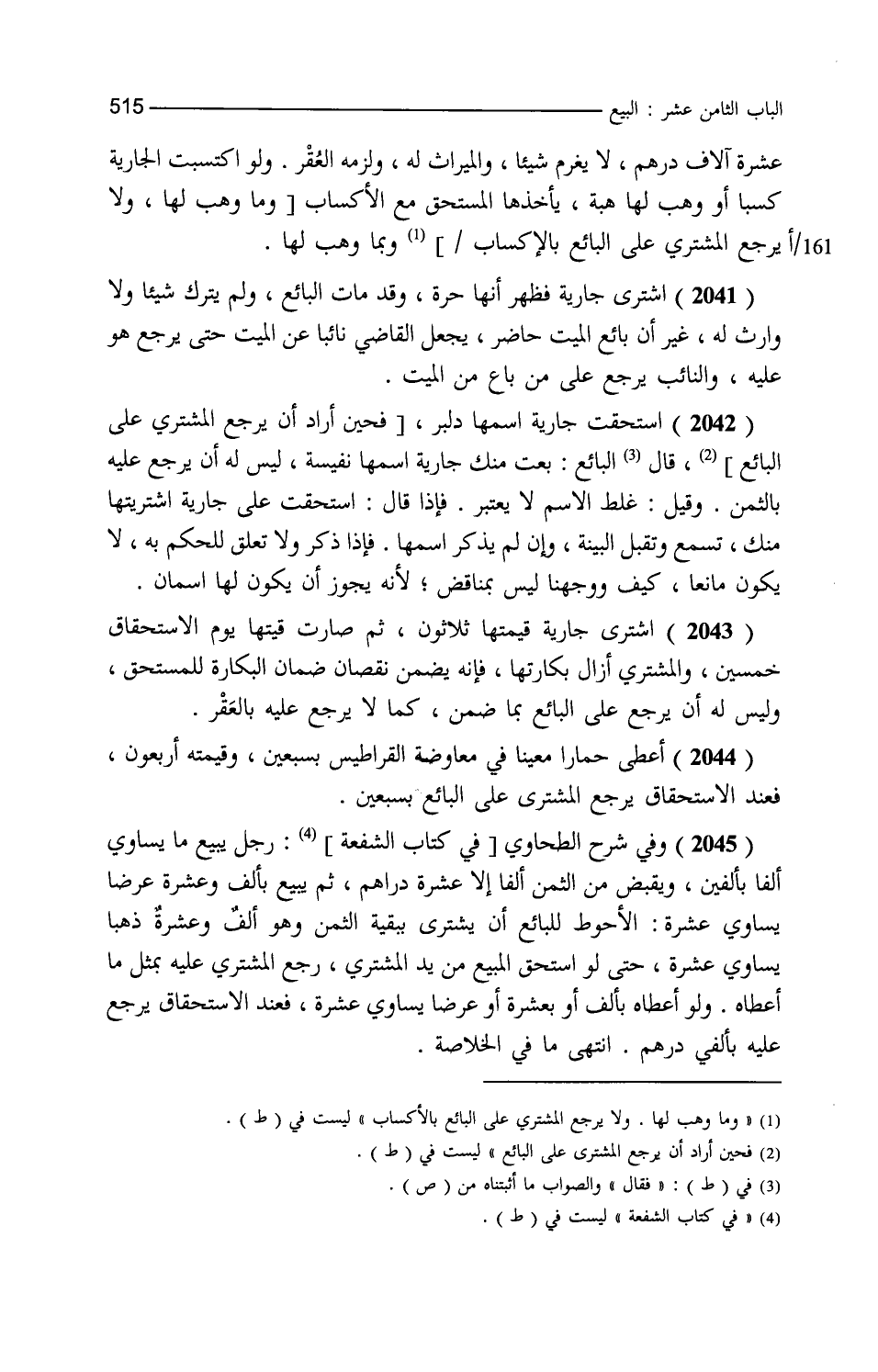 عشرة آلاف درهم لا يغرم شيئا والميراث له ولزمه العقر ولو اكتسبت الجارية كسبا أو وهب لها هبة يأخذها المستحق مع الإكساب وبما وهب لها اشترى جارية فظهر أنها حرة وقد مات البائع ولم يترك شيئا ولا وارث له غير أن بائع الميت حاضر يجعل القاضي نائبا عن الميت حتى يرجع هو عليه والنائب يرجع على من باع من الميت استحقت جارية اسمها دلير فقال البائع بعت منك جارية اسمها نفيسة ليس له أن يرجع عليه بالثمن وقيل غلط الاسم لا يعتبر فإذا قال استحقت علي جارية اشتريتها منك تسمع وتقبل البينة وإن لم يذكر اسمها فإذا ذكر ولا تعلق للحكم به لا يكون مانعا كيف ووجهنا ليس بمناقض لأنه يجوز أن يكون لها اسمان اشترى جارية قيمتها ثلاثون ثم صارت قيمتها يوم الاستحقاق خمسين والمشتري أزال بكارتها فإنه يضمن نقصان ضمان البكارة للمستحق وليس له أن يرجع على البائع بما ضمن كما لا يرجع عليه بالعقر أعطى حمارا معينا في معاوضة القراطيس بسبعين وقيمته أربعون فعند الاستحقاق يرجع المشتري على البائع بسبعين وفي شرح الطحاوي رجل يبيع ما يساوي ألفا بألفين ويقبض من الثمن ألفا إلا عشرة دراهم ثم يبيع بألف وعشرة عرضا يساوي عشرة الأحوط للبائع أن يشتري ببقية الثمن وهو ألف وعشرة ذهبا يساوي عشرة حتى لو استحق المبيع من يد المشتري رجع المشتري عليه بمثل ما أعطاه ولو أعطاه بألف أو بعشرة أو عرضا يساوي عشرة فعند الاستحقاق يرجع عليه بألفي درهم انتهى ما في الخلاصة