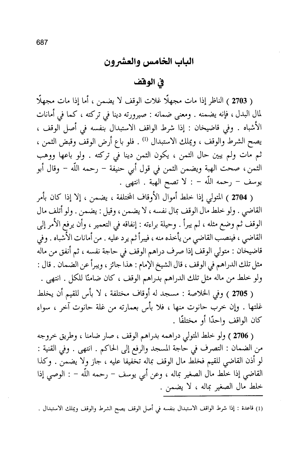 الناظر إذا مات مجهلا غلات الوقف لا يضمن أما إذا مات مجهلا لمال البدل فإنه يضمنه ومعنى ضمانه صيرورته دينا في تركته كما في أمانات الأشباه وفي قاضي خان إذا شرط الواقف الاستبدال بنفسه في أصل الوقف يصح الشرط والوقف ويملك الاستبدال فلو باع أرض الوقف وقبض الثمن ثم مات ولم يبين حال الثمن يكون دينا في تركته ولو باعها ووهب الثمن صحت الهبة ويضمن الثمن في قول أبي حنيفة وقال أبو يوسف لا تصح الهبة انتهى المتولي إذا خلط أموال الأوقاف المختلفة يضمن إلا إذا كان بأمر القاضي ولو خلط مال الوقف بمال نفسه لا يضمن وقيل يضمن ولو أتلف مال الوقف ثم وضع مثله لم يبرأ وحيلة براءته إنفاقه في التعمير وأن يرفع الأمر إلى القاضي فينصب القاضي من يأخذه منه فيبرأ ثم يرد عليه من أمانات الأشباه وفي قاضي خان متولي الوقف إذا صرف دراهم الوقف في حاجة نفسه ثم أنفق من ماله مثل تلك الدراهم في الوقف قال الشيخ الإمام هذا جائز ويبرأ عن الضمان قال ولو خلط من ماله مثل تلك الدراهم بدراهم الوقف كان ضامنا للكل انتهى وفي الخلاصة مسجد له أوقاف مختلفة لا بأس للقيم أن يخلط غلتها وإن خرب حانوت منها فلا بأس بعمارته من غلة حانوت آخر سواء كان الواقف واحدا أو مختلفا ولو خلط المتولي دراهمه بدراهم الوقف صار ضامنا وطريق خروجه من الضمان التصرف في حاجة المسجد والرفع إلى الحاكم انتهى وفي القنية لو أذن القاضي للقيم فخلط مال الوقف بماله تخفيفا عليه جاز ولا يضمن وكذا القاضي إذا خلط مال الصغير بماله وعن أبي يوسف الوصي إذا خلط مال الصغير بماله لا يضمن