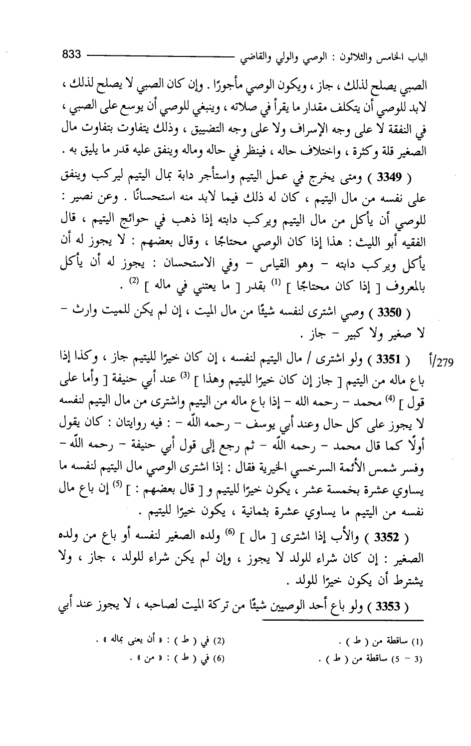 الصبي يصلح لذلك جاز ويكون الوصي مأجورا وإن كان الصبي لا يصلح لذلك لا بد للوصي أن يتكلف مقدار ما يقرأ في صلاته وينبغي للوصي أن يوسع على الصبي في نفقته لا على وجه الإسراف ولا على وجه التضييق وذلك يتفاوت بتفاوت مال الصغير قلة وكثرة واختلاف حاله فينظر في حاله وماله وينفق عليه قدر ما يليق به ومتى خرج في عمل اليتيم واستأجر دابة بمال اليتيم ليركب وينفق على نفسه من مال اليتيم كان له ذلك فيما لا بد منه استحسانا وعن نصير للوصي أن يأكل من مال اليتيم ويركب دوابه إذا ذهب في حوائج اليتيم قال الفقيه أبو الليث هذا إذا كان الوصي محتاجا وقال بعضهم لا يجوز له أن يأكل ويركب دابته وهو القياس وفي الاستحسان يجوز له أن يأكل بالمعروف بقدر أن يعني بماله وصي اشترى لنفسه شيئا من مال الميت إن لم يكن للميت وارث لا صغير ولا كبير جاز ولو اشترى مال اليتيم لنفسه إن كان خيرا لليتيم جاز وكذا إذا باع ماله من اليتيم عند أبي حنيفة وقال محمد لو باع ماله لليتيم أو اشترى من مال اليتيم لنفسه لا يجوز على كل حال وعند أبي يوسف فيه روايتان كان يقول أولا كما قال محمد ثم رجع إلى قول أبي حنيفة وفسر شمس الأئمة السرخسي الخيرية فقال إذا اشترى الوصي مال اليتيم لنفسه ما يساوي عشرة بخمسة عشر يكون خيرا لليتيم وإن باع مال نفسه من اليتيم ما يساوي عشرة بثمانية يكون خيرا لليتيم والأب إذا اشترى من ولده الصغير لنفسه أو باع من ولده الصغير إن كان الشراء للولد لا يجوز وإن لم يكن شراء للولد جاز ولا يشترط أن يكون خيرا للولد ولو باع أحد الوصيين شيئا من تركة الميت لصاحبه لا يجوز عند أبي