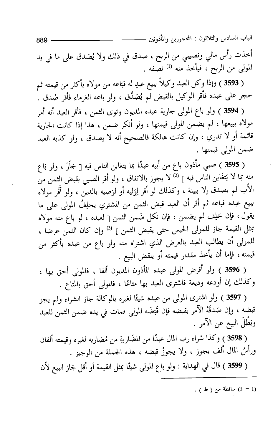 أخذت رأس مالي ونصيبي من الربح صدق في ذلك ولا يصدق على ما في يد المولى من الربح فيأخذ نصفه وإذا وكل العبد وكيلا ببيع عبد له فباعه من مولاه بأكثر من قيمته ثم حجر على عبده فأقر الوكيل بالقبض لم يصدق ولو باعه الغرماء فأقر صدق ولو باع المولى جارية عبده المديون ونوى الثمن فأقر العبد أنه أمر مولاه ببيعها لم يضمن المولى قيمتها ولو أنكر ضمن هذا إذا كانت الجارية قائمة أو لا تدري وإن كانت هالكة فالصحيح أنه لا يصدق ولو كذبه العبد ضمن المولى قيمتها صبي مأذون باع من أبيه عبدا بما يتغابن الناس فيه لا يجوز بالاتفاق ولو أقر الصبي بقبض الثمن من الأب لم يصدق إلا ببينة وكذلك لو أقر لوليه أو لوصيه بالدين ولو أقر مولاه ببيع عبده فباعه ثم أقر أن العبد قبض الثمن من المشتري يحلف المولى على ما يقول فإن حلف لم يضمن فإن نكل ضمن الثمن وإن كان الثمن عرضا للمولى أن يطالب العبد بالعرض الذي اشتراه منه ولو باع من عبده بأكثر من قيمته فإما أن يأخذ مقدار قيمته أو ينقض البيع ولو أقرض المولى عبده المأذون المديون ألفا فالمولى أحق بها وكذلك إن أودعه وديعة فاشترى العبد بها متاعا فالمولى أحق بالمتاع ولو اشترى المولى من عبده شيئا لغيره بالوكالة جاز الشراء ولم يجز قبضه وإن صدقه الآمر بقبضه فإن قبضه المولى فمات في يده ضمن الثمن للعبد وبطل البيع عن الآمر وكذا شراء رب المال عبدا من المضاربة من مضاربة لغيره وقيمته ألفان ورأس المال ألف يجوز ولا يجوز قبضه هذه الجملة. من الوجيز. قال في الهداية ولو باع المولى شيئا بمثل القيمة أو أقل جاز البيع لأن