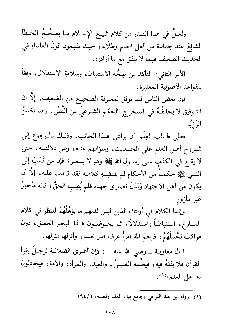 وإنما الكلام في أولئك الذين ليس لديهم ما يؤهِّلُهُمْ للنظر في كلام الشارع، استنباطاً واستدلالاً؛ ثم يخوضون هذا البحر العميق، دون مراكبَ تَحْمِلُهُمْ، فرحِمَ الله امرأً عرف قدر نفسه، وأنزلها منزلها.