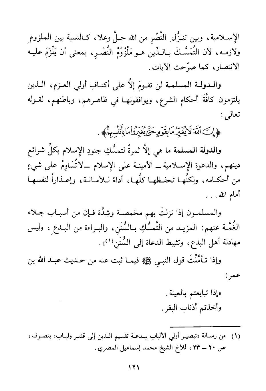 (¬1) من رسالة (تبصير أولي الألباب ببدعة تقسيم الدين إلي قشر ولباب) بتصرف ص: 20 - 23، للأخ الشيخ محمد إسماعيل المصري.