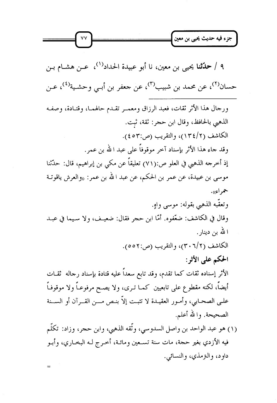 كتاب حديث يحيى بن معين رواية أبي منصور الشيباني