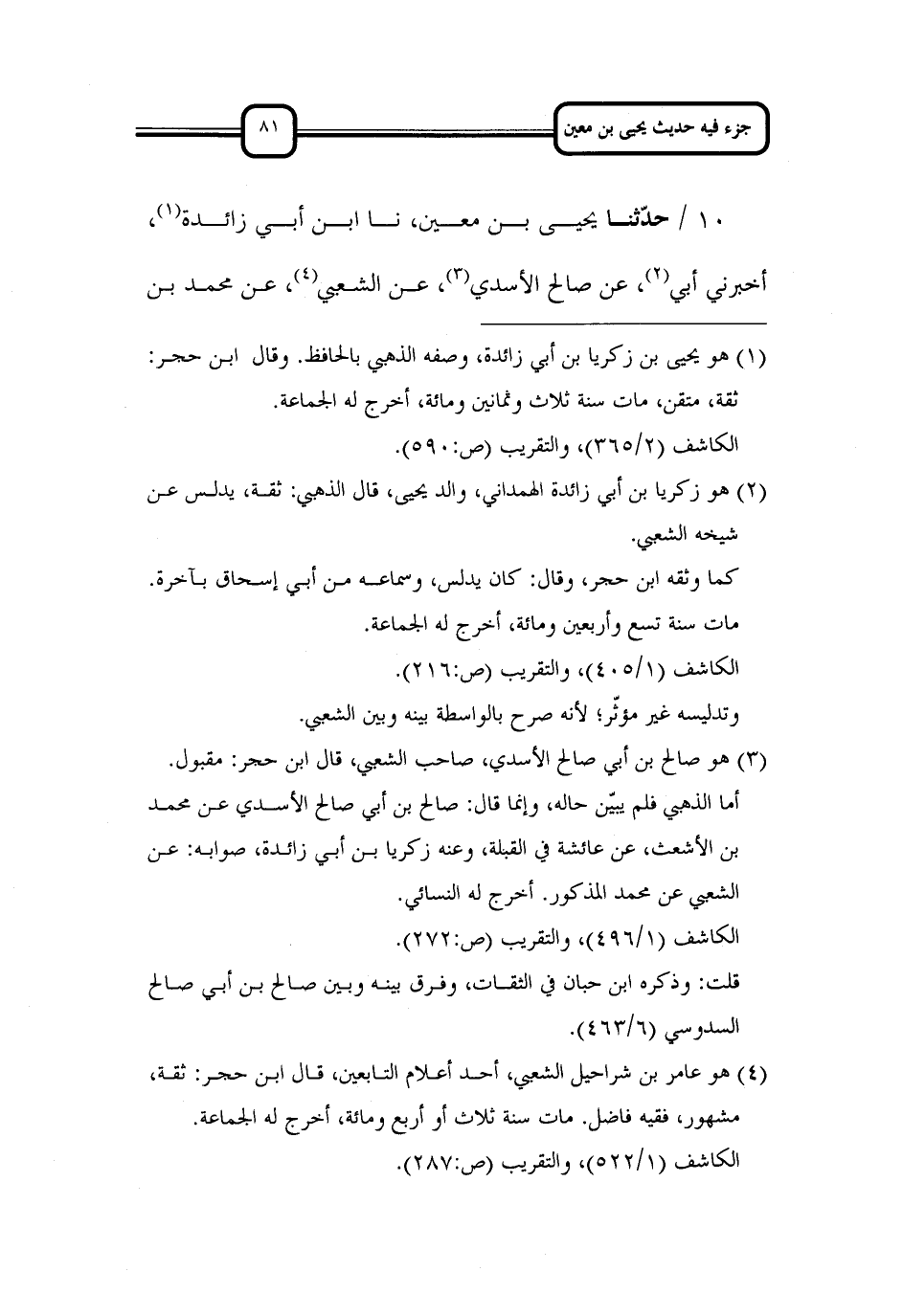 كتاب حديث يحيى بن معين رواية أبي منصور الشيباني