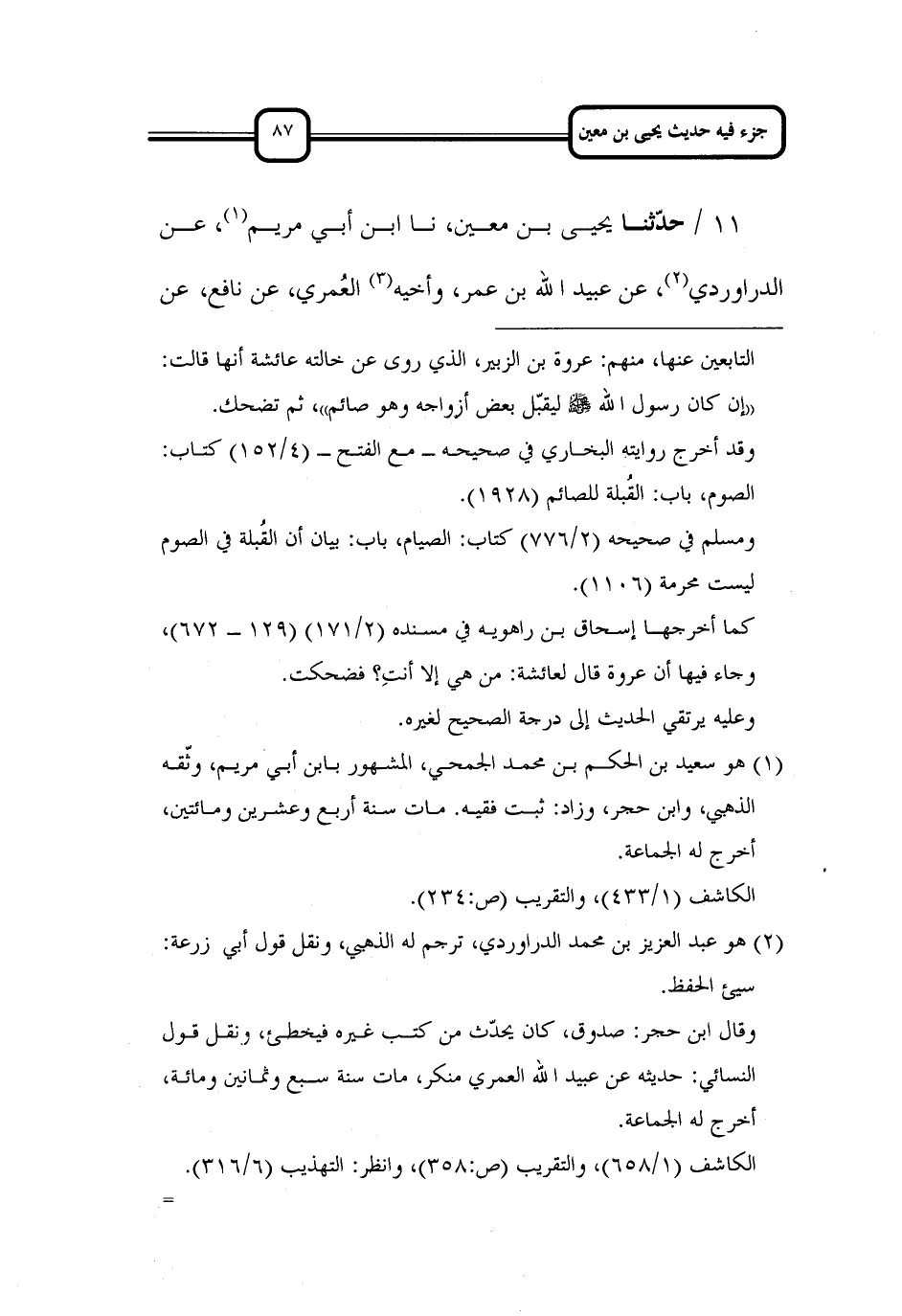 كتاب حديث يحيى بن معين رواية أبي منصور الشيباني