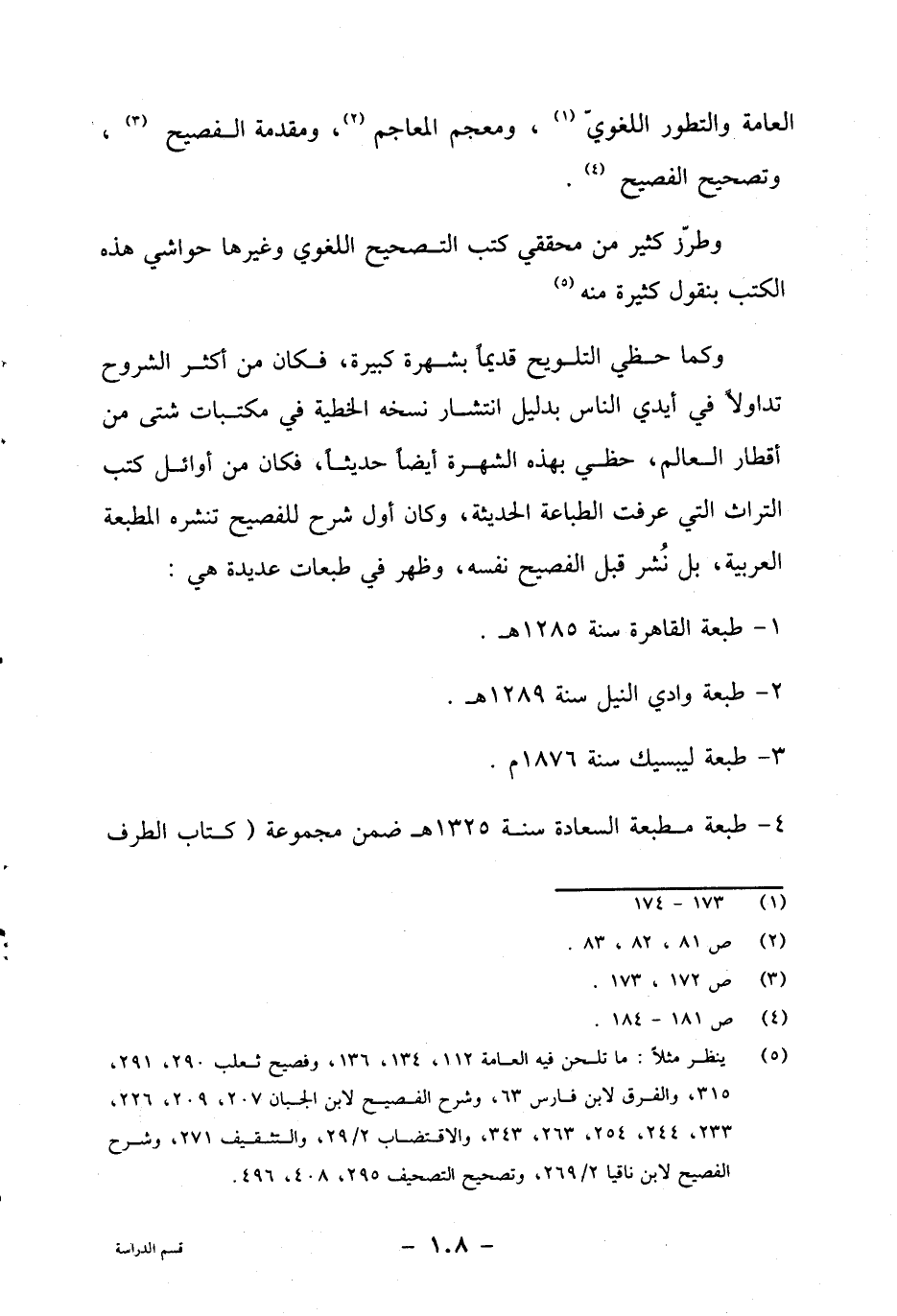 5 ينظر مثلا: ما تلحن فيه العامة 112، 134، 136، وفصيح ثعلب 290، 291، 315، والفرق لابن فارس 63، وشرح الفصيح لابن الجبان 207، 209، 226، 233، 244، 254، 263، 343، والاقتضاب 2/29، والتثقيف 271، وشرح الفصيح لابن ناقيا 2/269، وتصحيح التصحيف 295، 408، 496.