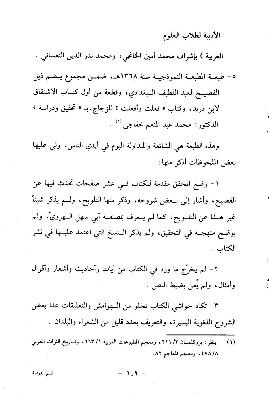 الأدبية لطلاب العلوم العربية) بإشراف محمد أمين الخانجي، ومحمد بدر الدين النعساني.