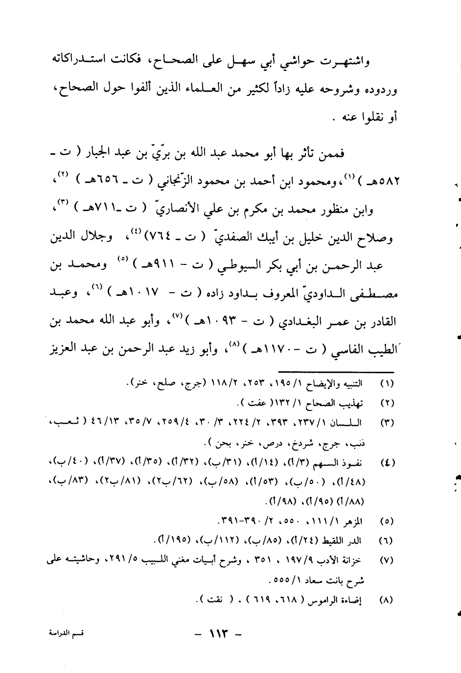 764) 4، وجلال الدين عبد الرحمن بن أبي بكر السيوطي (ت- 911 هـ) 5، ومحمد بن مصطفى الداودي المعروف بداود زاده (ت – 1017 هـ) 6، وعبد القادر بن عمر البغدادي (ت – 1093 هـ) 7، وأبو عبد الله محمد بن الطيب الفاسي (ت - 1170 هـ) 8، وأبو زيد عبد الرحمن بن عبد العزيز