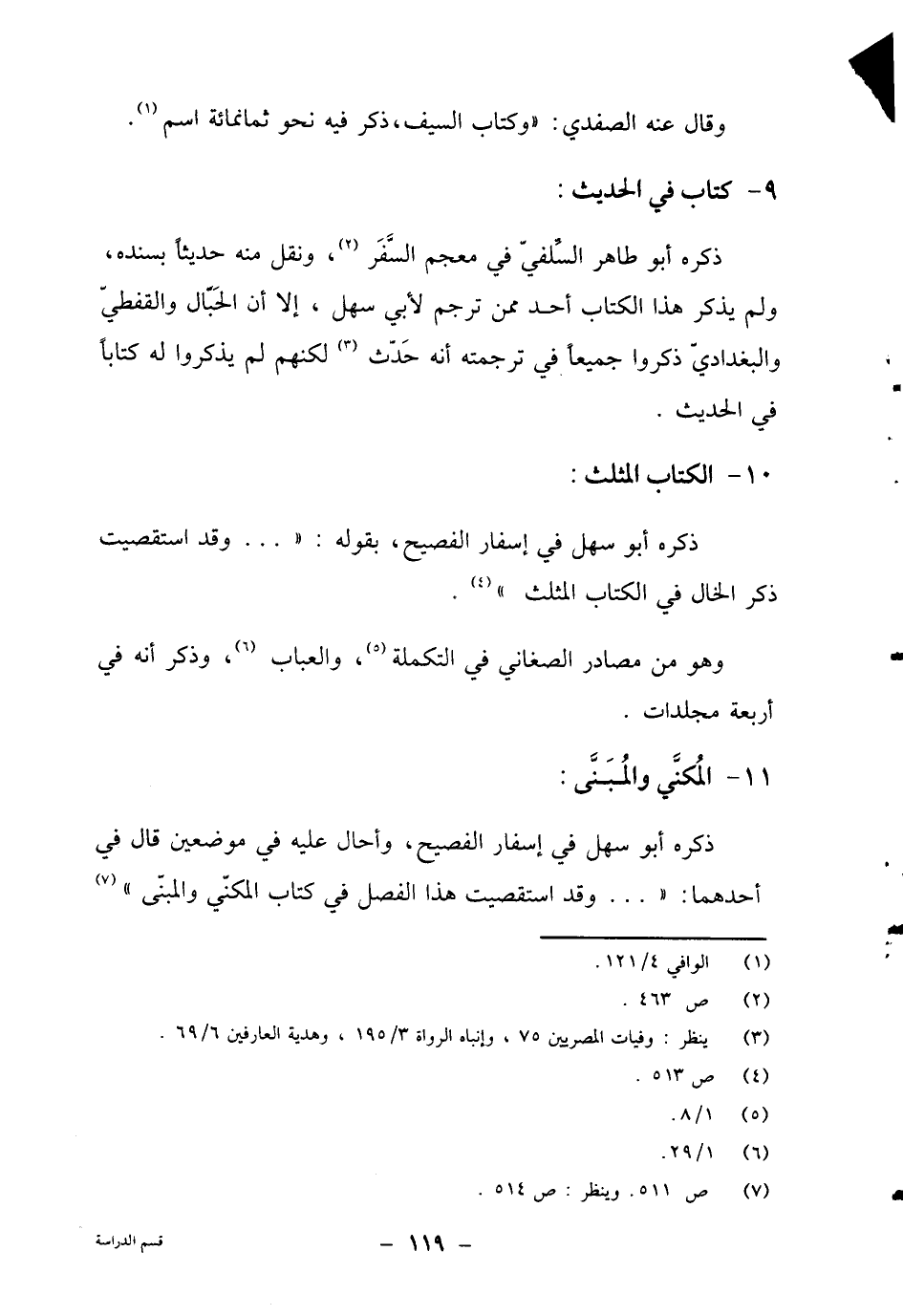 وقال عنه الصفدي: "وكتاب السيف، ذكر فيه نحو ثمانمائة اسم1.