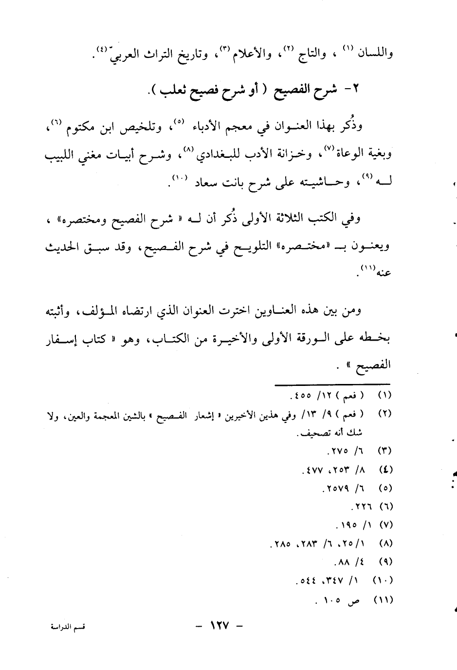 (فعم) 9/13/ وفي هذين الأخيرين "إشعار الفصيح" بالشين المعجمة والعين، ولا شك أنه تصحيف.