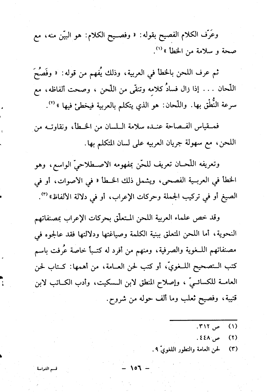 وتعريفه اللحان تعريف للحن يمفهومه الاصطلاحي الواسع، وهو الخطأ في العربية الفصحى، ويشمل ذلك الخطأ "في الأصوات، أو في الصيغ أو في تركيب الجملة وحركات الإعراب، أو في دلالة الألفاظ"3.