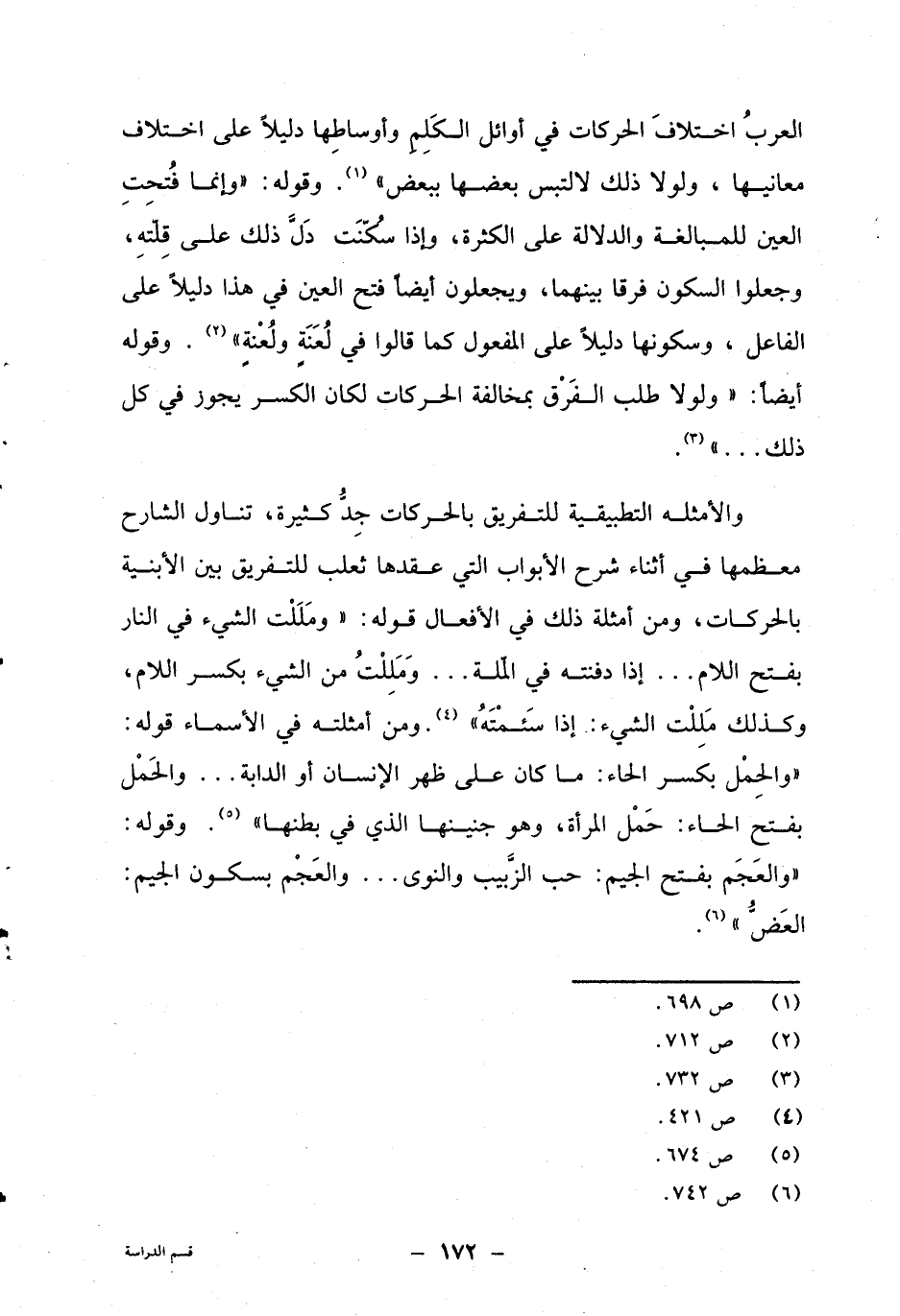 العرب اختلاف الحركات في أوائل الكلم وأوساطها دليلا على اختلاف معانيها، ولولا ذلك لالتبس بعضها ببعض"1. وقوله: "وإنما فتحت العين للمبالغة والدلالة على الكثرة، وإذا سكنت دل ذلك على قلته، وجعلوا السكون فرقا بينهما، ويجعلون أيضا فتح العين في هذا دليلا على الفاعل، وسكونها دليلا على المفعول كما قالوا في لُعَنة ولُعْنة"2. وقوله أيضا: "ولولا طلب الفرق بمخالفة الحركات لكان الكسر يجوز في كل ذلك ... "3.