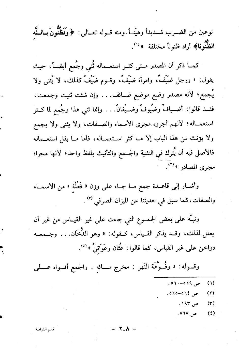 وأشار إلى قاعدة جمع ما جاء على وزن "فعلة" من الأسماء والصفات، كما سبق في حديثنا عن الميزان الصرفي3.