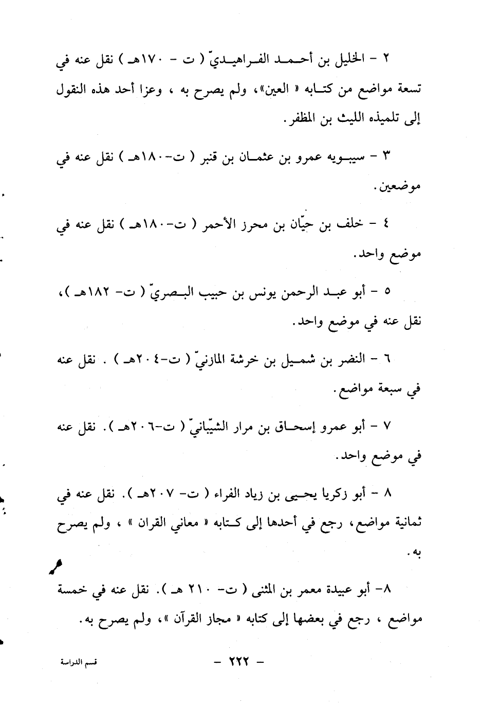 9- أبو عبيدة معمر بن المثنى (ت- 210 هـ) ، نقل عنه في خمسة مواضع، رجع في بعضها إلى كتابه "مجاز القرآن"، ولم يصرح به.
