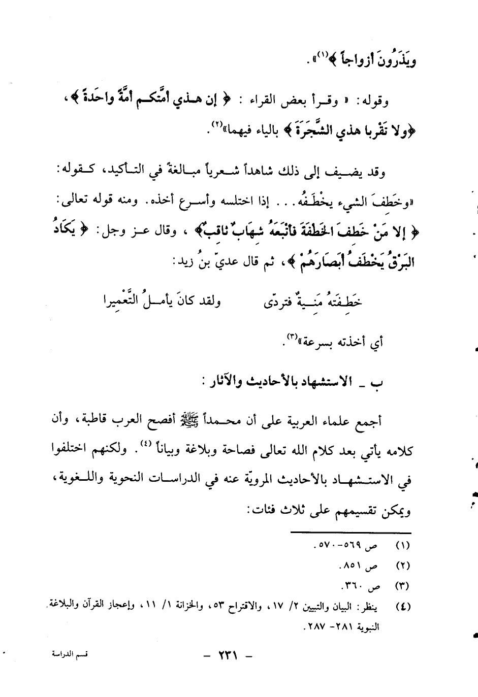 4 ينظر البيان والتبيين 2/17، والاقتراح 53، والخزانة 1/11، وإعجاز القرآن والبلاغة النبوية 281-287.