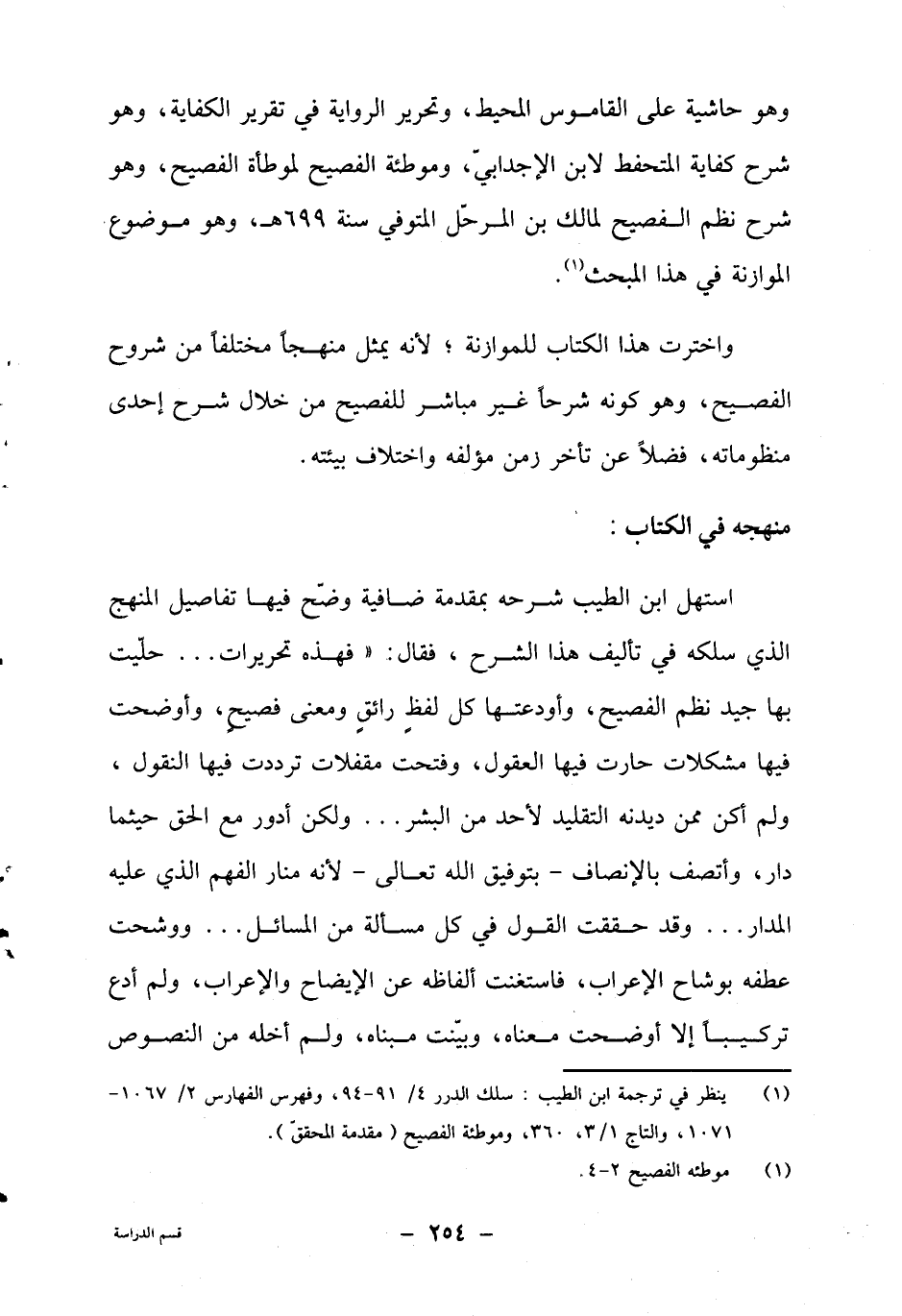 واخترت هذا الكتاب للموازنة، لأنه يمثل منهجا مختلفا من شروح الفصيح، وهو كونه شرحا غير مباشر للفصيح من خلال شرح إحدى منظوماته، فضلا عن تأخر زمن مؤلفه واختلاف بيئته.