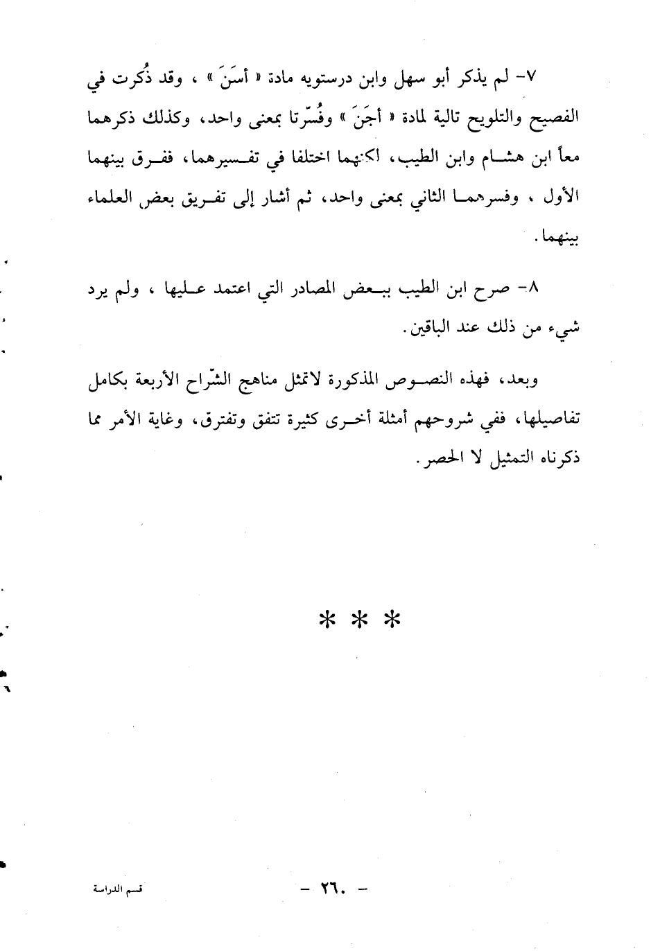 7- م يذكر أبوسهل وابن درستويه مادة "أسن"، وقد ذكرت في الفصيح والتلويح تالية لمادة "أجن"وفسرتا بمعنى واحد، وكذلك ذكهما معا ابن هشام وابن الطيب، لكنهما اختلفا في تفسيرهما، ففرق بينهما الأول، وفسرهما الثاني بمعنى واحد، ثم أشار إلى تفريق بعض العلماء بينهما.