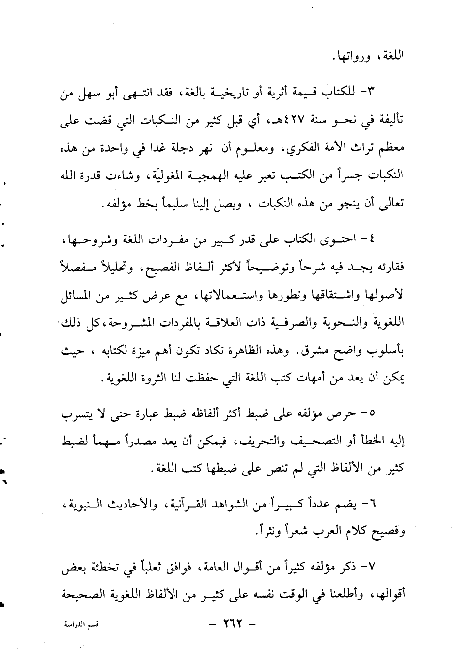 3- للكتاب قيمة أثرية أو تاريخية بالغة، فقد انتهى أبو سهل من تأليفه في نحو سنة 427هـ، أي قبل كثير من النكبات التي قضت على معظم تراث الأمة الفكري، ومعلوم أن نهر دجلة غدا في واحدة من هذه النكبات جسرا من الكتب تعبر عليه الهمجية المغولية، وشاءت قدرة الله تعالى أن ينجو من هذه النكبات، ويصل إلينا سليما بخط مؤلفه.