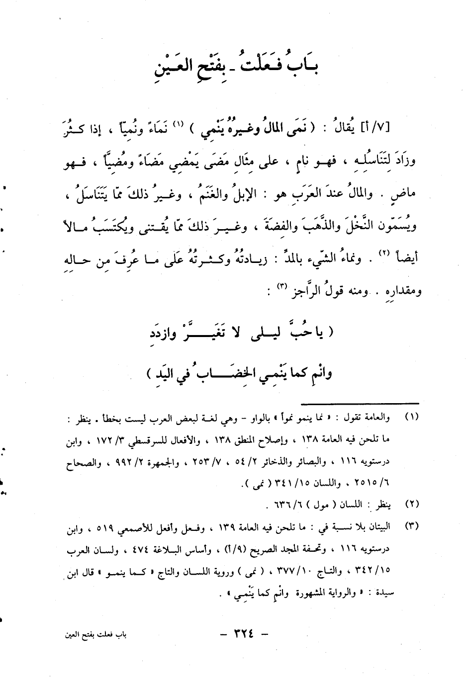 1 والعامة تقول: "نما ينمو نموا" بالواو – وهي لغة لبعض العرب ليست بخطأ – ينظر: ما تلحن فيه العامة 138، وإصلاح المنطق 138، والأفعال للسرقسطي 3/172ن وابن درستويه 116، والبصائر والذخائر 2/54، 7/253ن والجمهرة 2/992ن والصحاح 6/2515، واللسان 15/341 (نمى) .