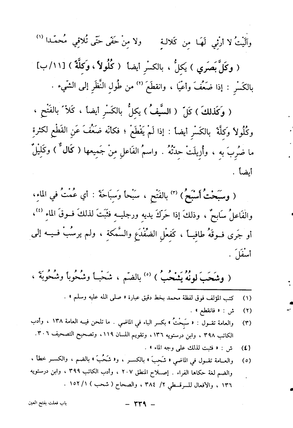 3 والعامة تقول: "سبحت" بكسر الباء في الماضي. ما تحلن فيه العامة 138، وأدب الكاتب 398، وابن درستويه 136، وتقويم اللسان 119، وتصحيح التصحيف 306.