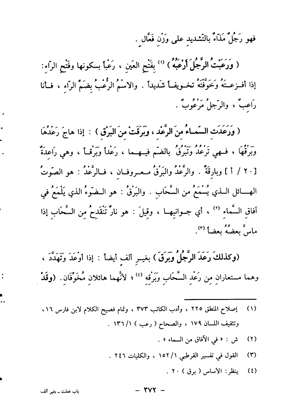 1 إصلاح المنطق 225، وأدب الكاتب 373، وتمام فصيح الكلام لابن فارس 16، وتثقيف اللسان 179، والصحاح (رعب) 1/136.