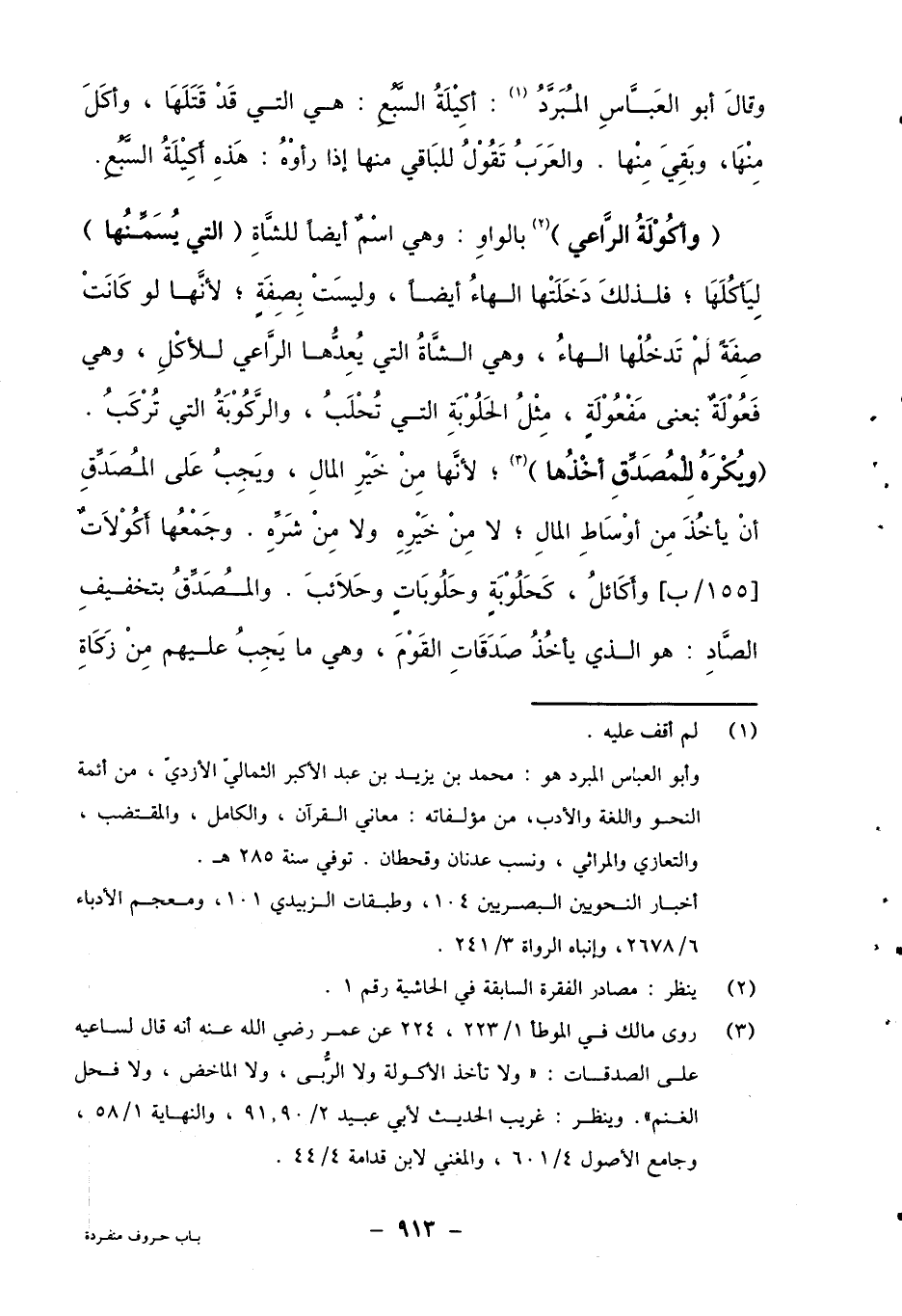 3 وروى مالك في الموطأ 1/223، 224 عن عمر رضي الله عنه قال لساعيه على الصدقات: "ولا تأخذ الأكولة ولا الربى، ولا الماخض، ولا فحل الغنم". وينظر: غريب الحديث لأبي عبيد 2/90، 91، والنهاية 1/58، وجامع الأصول 4/601، والمغني لابن قدامة 4/44.