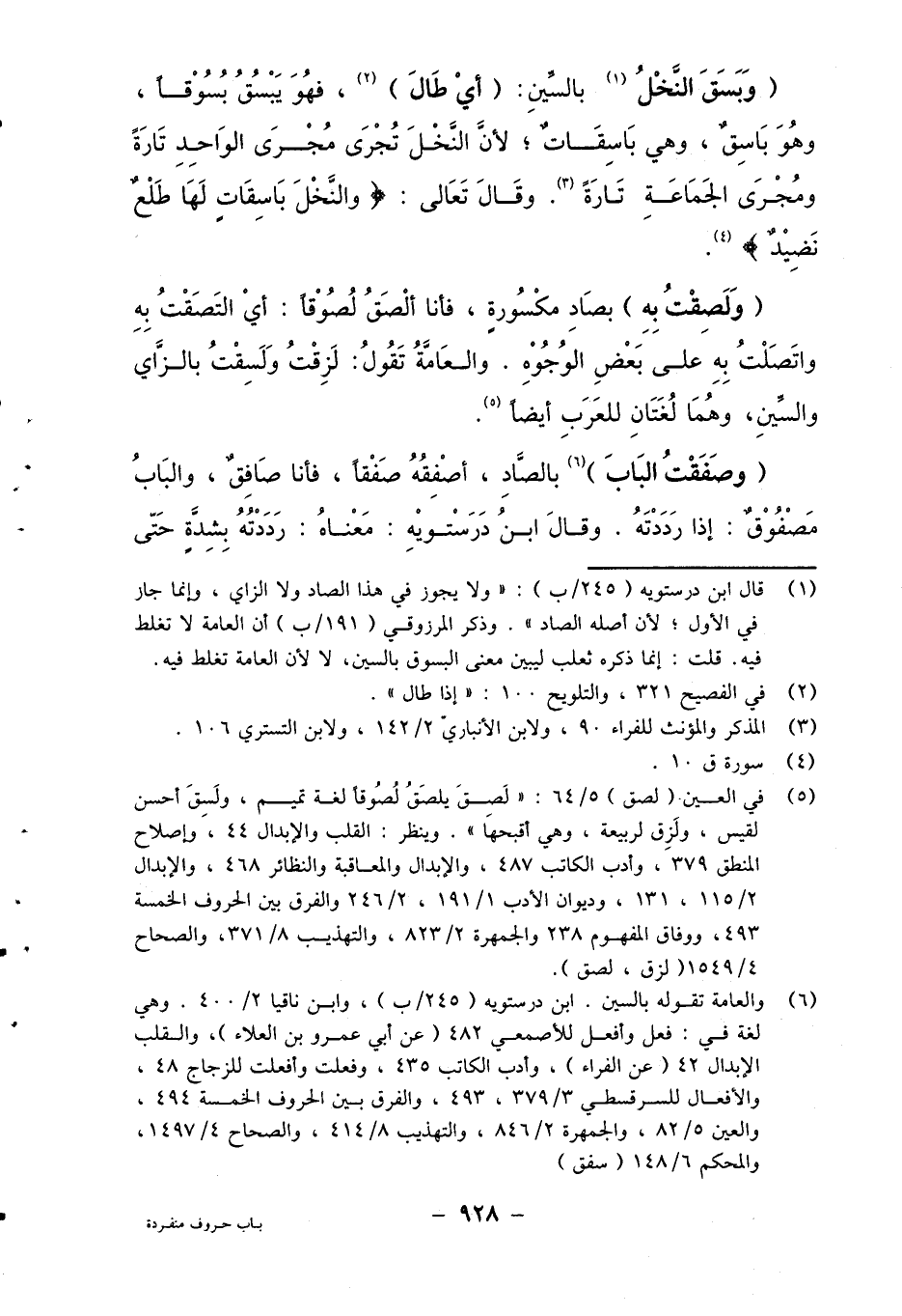 1 قال ابن درستويه (245/ب) : "ولا يجوز في هذا الصاد ولا الزاي، وإنما جاز في الأول، لأن أصله الصاد". وذكر الرزوقي (191/ب) أن العامة لا تغلط فيه. قلت: إنما ذكره ثعلب ليبين معنى البسوق بالسين، لا لأن العامة تغلط فيه.