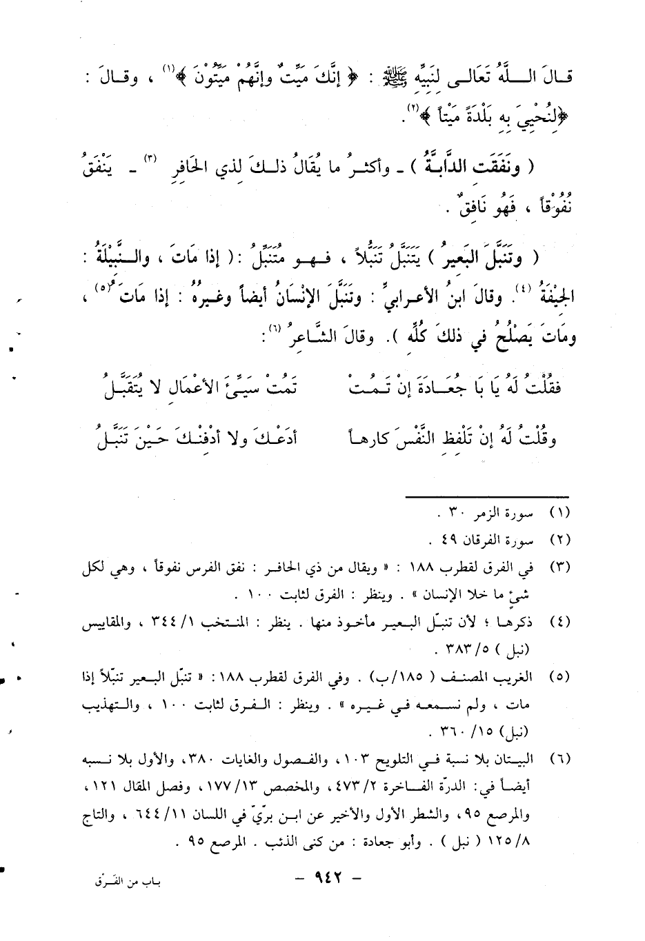 3 في الفرق لقطرب 188: "ويقال من ذي الحافر: نفق الفرس نفوقا، وهي لكل شيء ما خلا الإنسان". ينظر: الفرق لثابت 100.