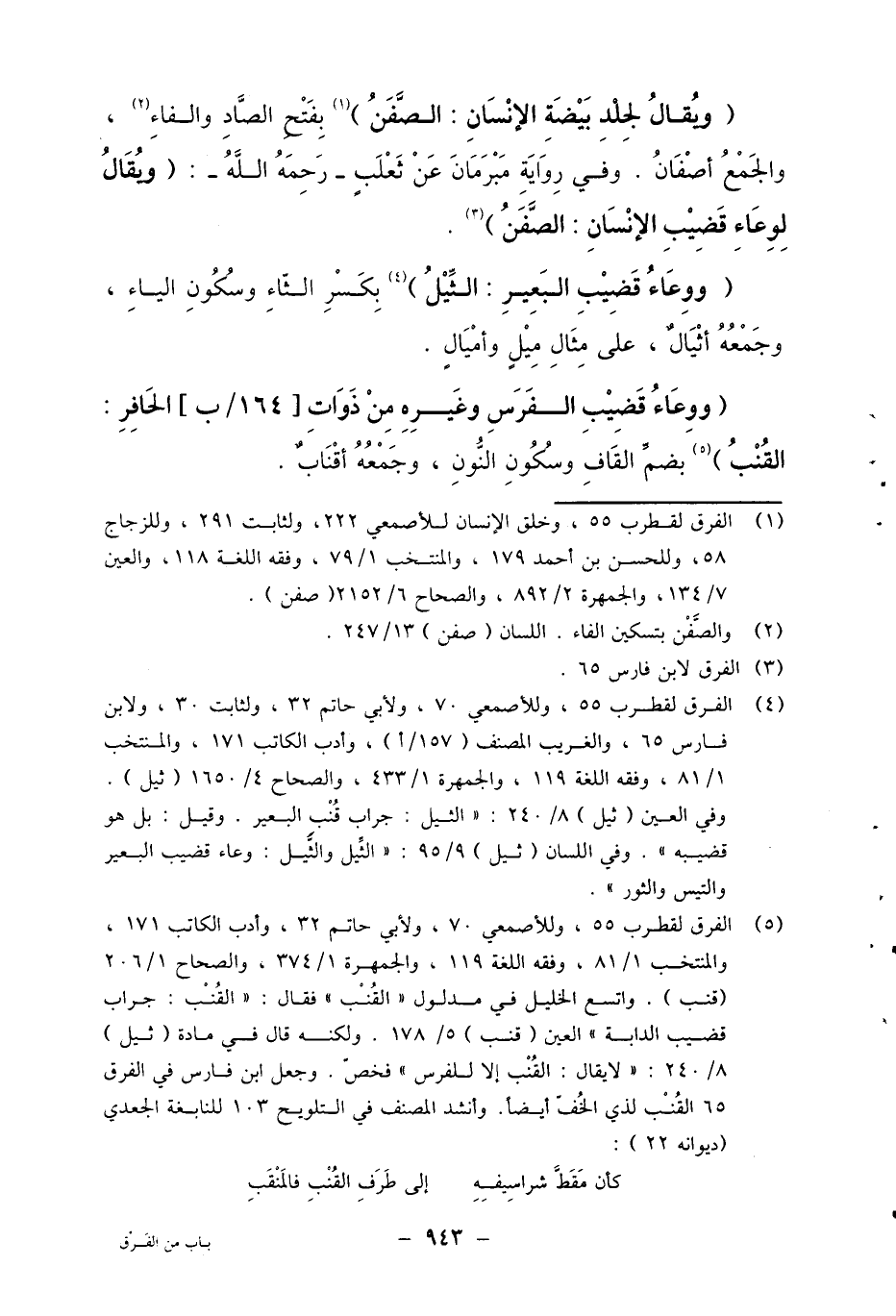 1 الفرق لقطرب 55، وخلق الإنسان للأصمعي 222، ولثابت 291، وللزجاج 58، وللحسن بن أحمد 179، والمنتخب 1/79، وفقه اللغة 118، والعين 7/134، والجمهرة 2/892، والصحاح 6/2152 (صفن) .