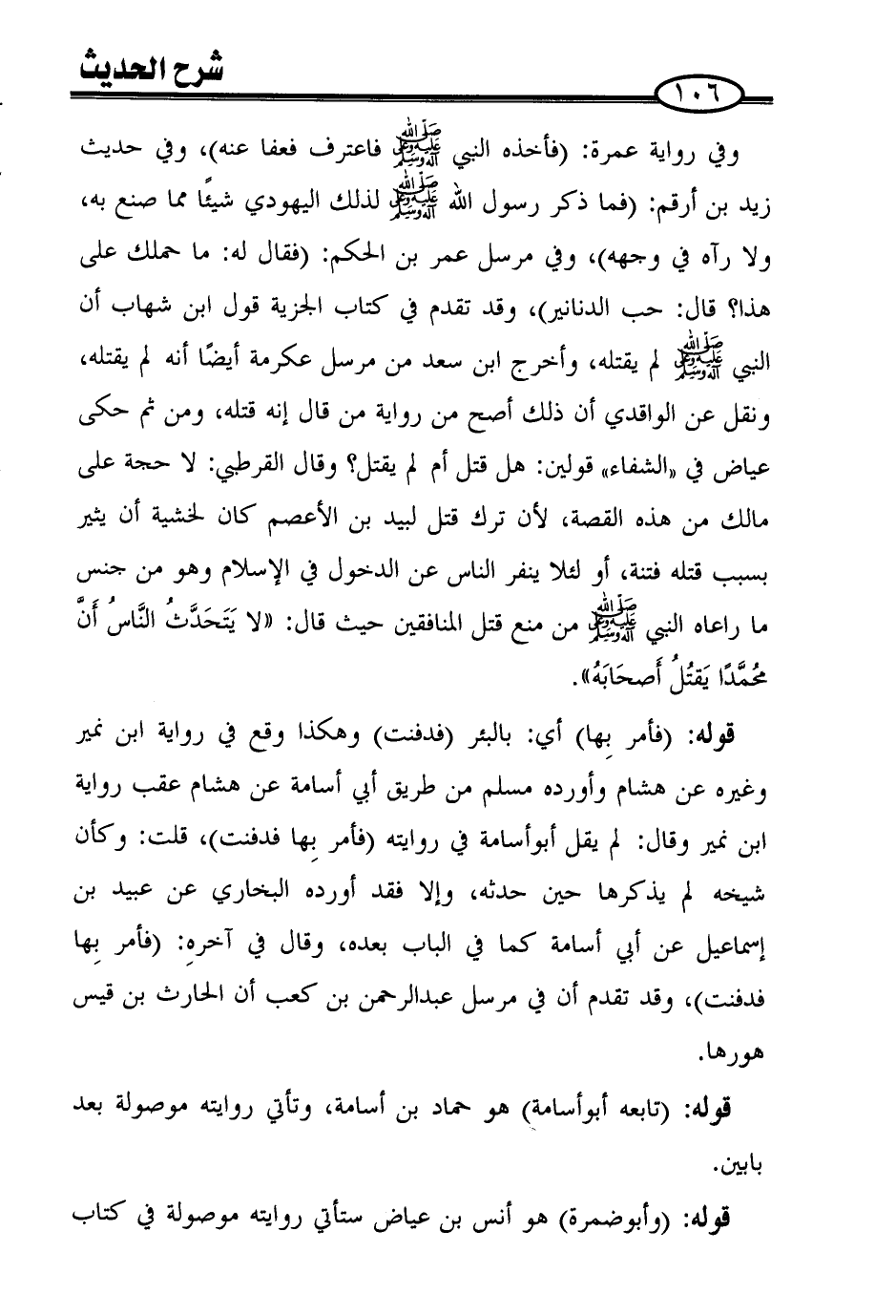 وفي رواية عمرة: (فأخذه النبي صلى الله عليه وعلى آله وسلم فاعترف فعفا عنه)، وفي حديث زيد بن أرقم: (فما ذكر رسول الله صلى الله عليه وعلى آله وسلم لذلك اليهودي شيئًا مما صنع به، ولا رآه في وجهه)، وفي مرسل عمر بن الحكم: (فقال له: ما حملك على هذا؟ قال: حب الدنانير)، وقد تقدم في كتاب الجزية قول ابن شهاب أن النبي صلى الله عليه وعلى آله وسلم لم يقتله، وأخرج ابن سعد من مرسل عكرمة أيضًا أنه لم يقتله، ونقل عن الواقدي أن ذلك أصح من رواية من قال إنه قتله، ومن ثم حكى عياض في "الشفاء" قولين: هل قتل أم لم يقتل؟ وقال القرطبي: لا حجة على مالك من هذه القصة، لأن ترك قتل لبيد بن الأعصم كان لخشية أن يثير بسبب قتله فتنة، أو لئلا ينفر الناس عن الدخول في الإسلام وهو من جنس ما راعاه النبي صلى الله عليه وعلى آله وسلم من منع قتل المنافقين حيث قال: ((لا يتحدّث النّاس أنّ محمّدًا يقتل أصحابه)).