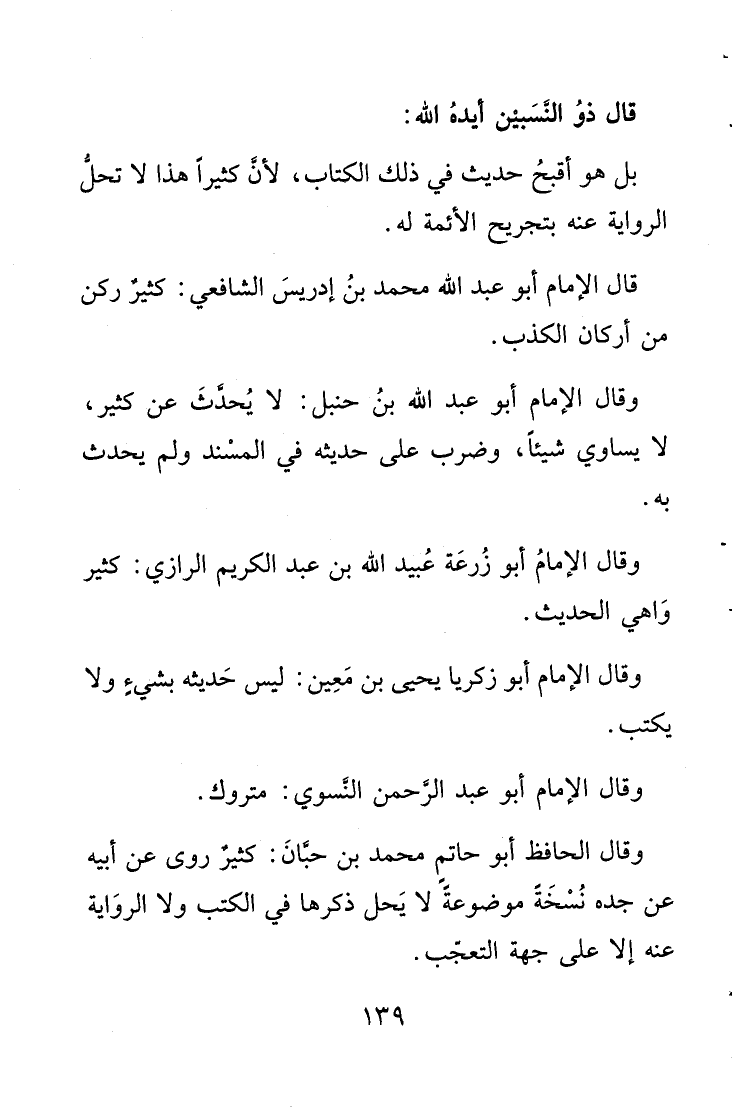 بل هو أقبحُ حديث في ذلك الكتاب، لأن كثيراً هذا لا تحل الرواية عنه بتجريح الأئمة له.