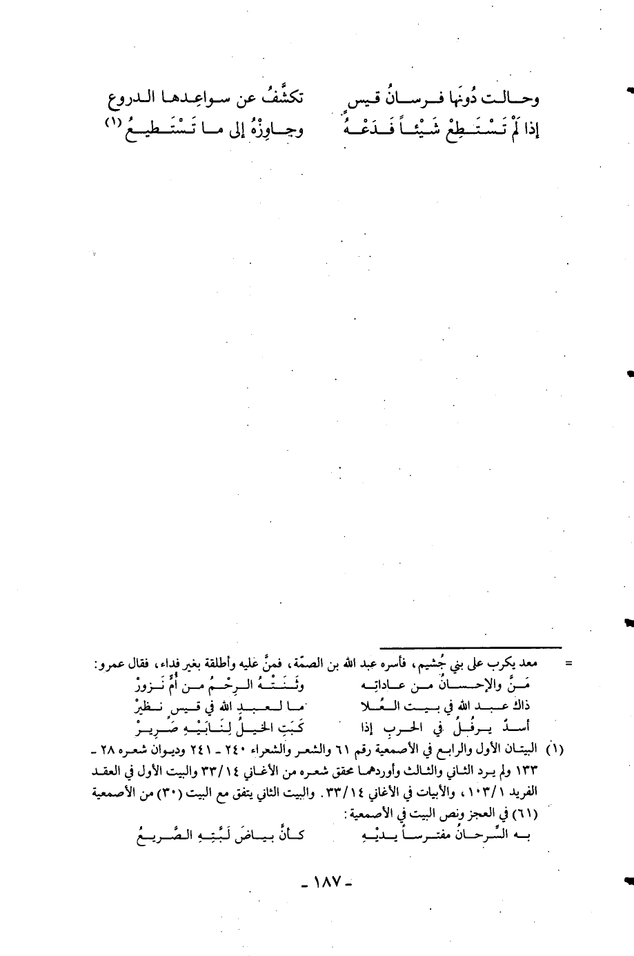 (وحالت دونهَا فرسَان قيس ... تكشف عَن سواعدها الدروع)