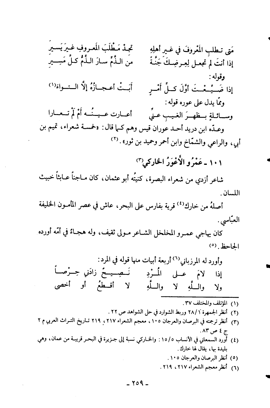 وعده ابْن دُرَيْد أحد عوران قيس وهم كَمَا قَالَ خَمْسَة شعراء تَمِيم بن أبي والراعي والشماخ وَابْن احمر وَحميد بن ثَوْر